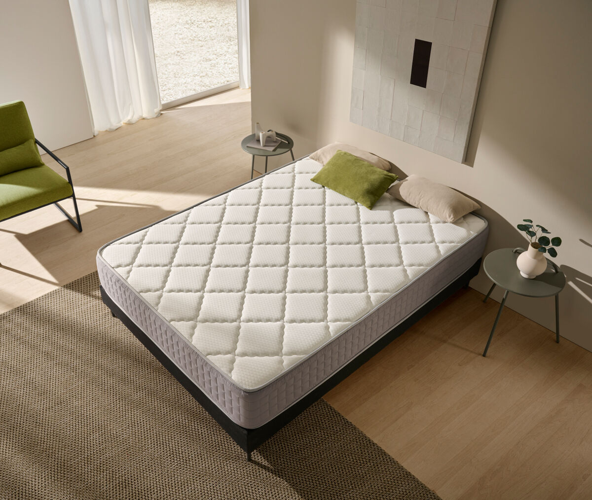 Es compatible con bases articuladas, somieres y camas tradicionales, recomendado para quienes buscan equilibrio entre firmeza y confort. Fabricado artesanalmente en España, incluye garantía de 3 años, asegurando calidad y durabilidad.
