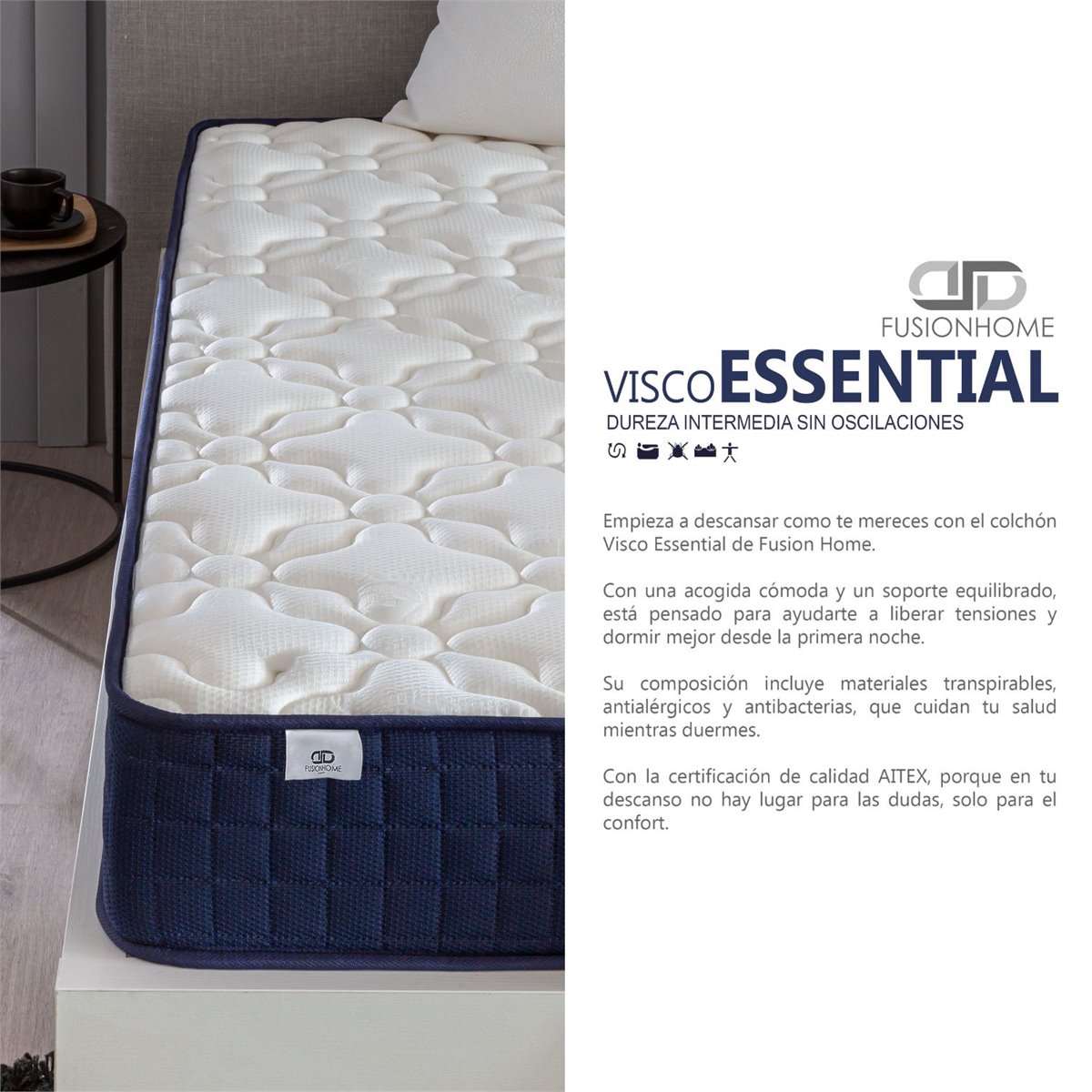 Colchón de gama básica con núcleo anatómico y acolchado 100% viscoelástico suave que permite gran adaptabilidad y comodidad. Presenta alta transpirabilidad, firmeza intermedia y tratamiento antialérgico y anti bacterias. Cuenta también con función doble cara Verano/Invierno. Está certificado por AITEX, lo que asegura el cumplimiento de estrictos estándares de calidad y seguridad. Fabricado en España, este colchón de gama básica es perfecto para habitaciones juveniles, segundas residencias o quienes valoran una buena relación calidad-precio. Y está disponible en diferentes medidas de ancho (90cm, 105cm, 135cm y 150cm), en dos largos estándar (190cm y 200cm), y también en dos alturas diferentes (14cm o 20cm). Es ideal para un descanso confortable y saludable para quienes buscan un colchón cómodo a buen precio.