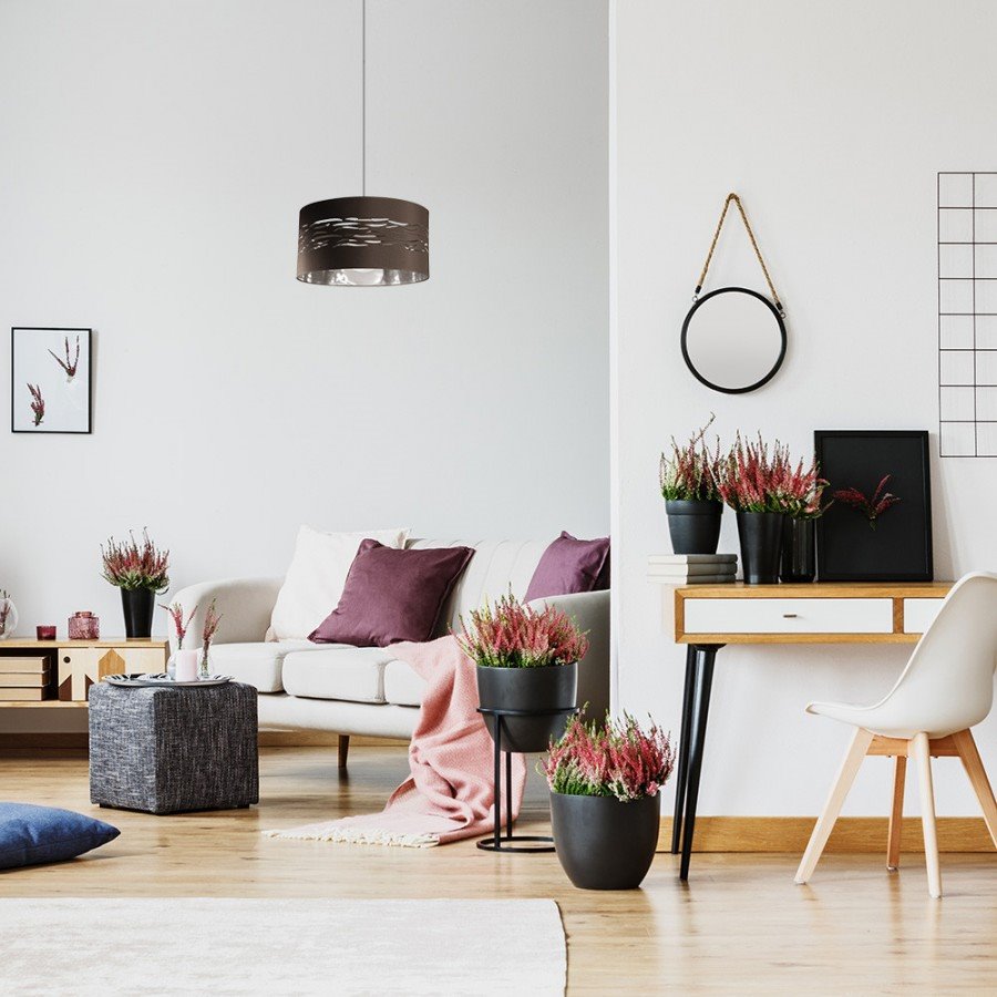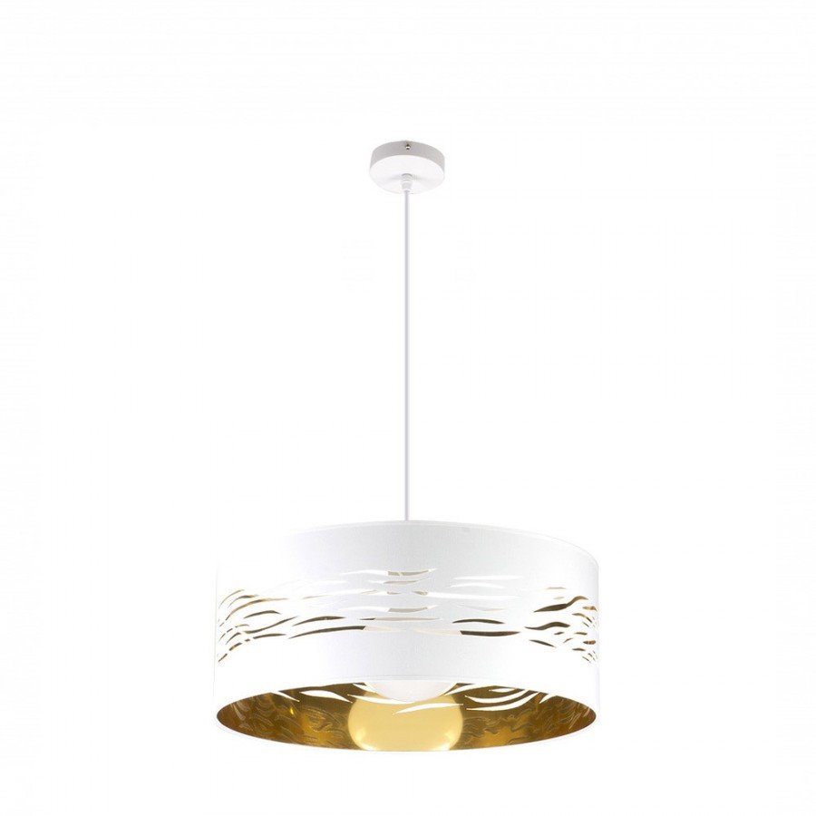 Colgante serie NIEBLA en color BLANCO con pantalla en BLANCO/ORO. Realizado en metal y textil, se caracteriza por el diseño moderno del dibujo que crea su pantalla calada, dejándose ver el color oro de su interior, resultando una bonita composición para decorar e iluminar cualquier estancia del hogar o lugar de trabajo. Muy aconsejable completar con una bonita bombilla decorativa. Posee un portalámparas E27. Bombilla no incluida. Tiene una dimensión regulable en altura de 34<104x50x50 centímetros. En esta misma serie podemos encontrar el colgante de 40 centímetros de diámetro y el sobremesa. Todos también disponible en las combinaciones de colores blanco/blanco-oro, cromo/blanco-plata y cromo/marrón-plata.