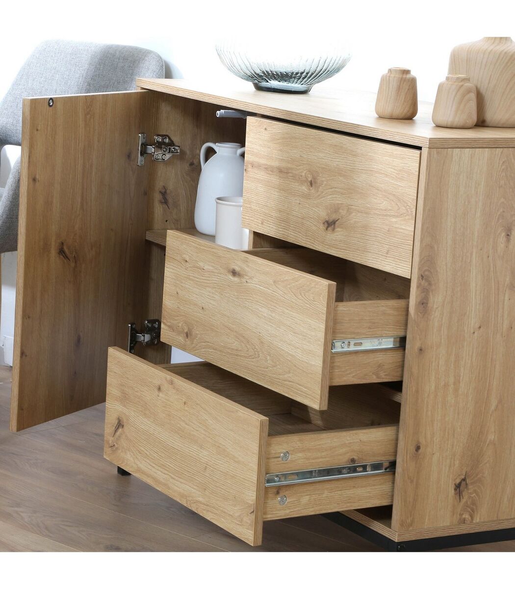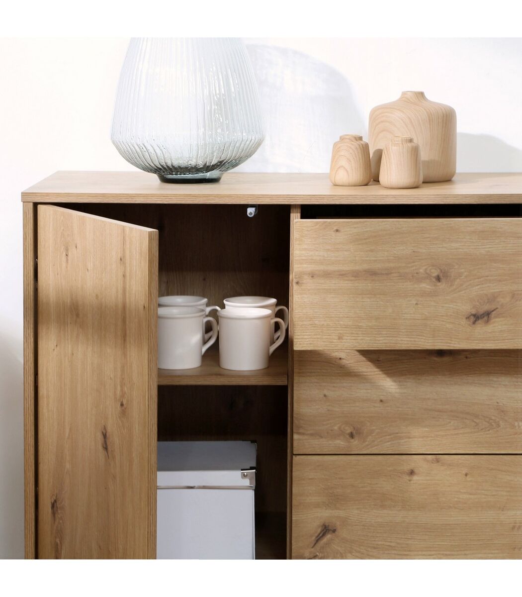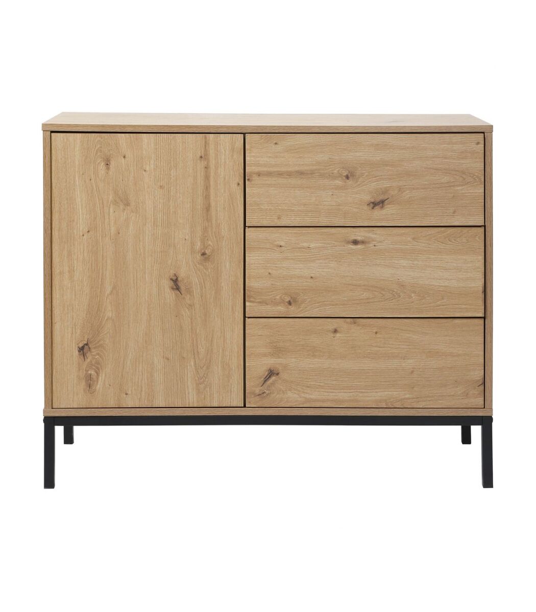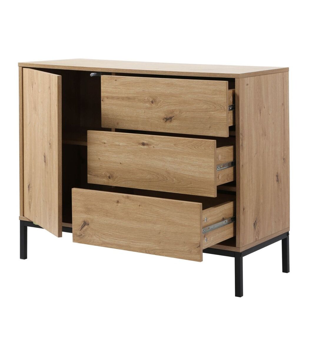 - Descubre nuestra cómoda con 1 puerta y 3 cajones, ideal para almacenar tus cosas en un mueble compacto y de diseño.