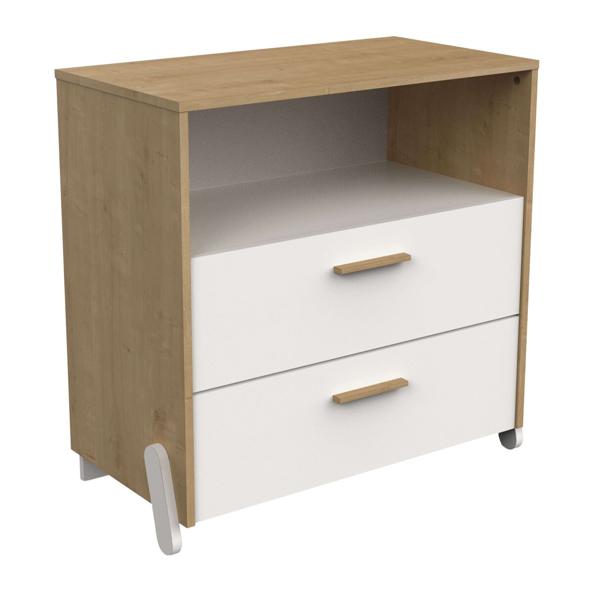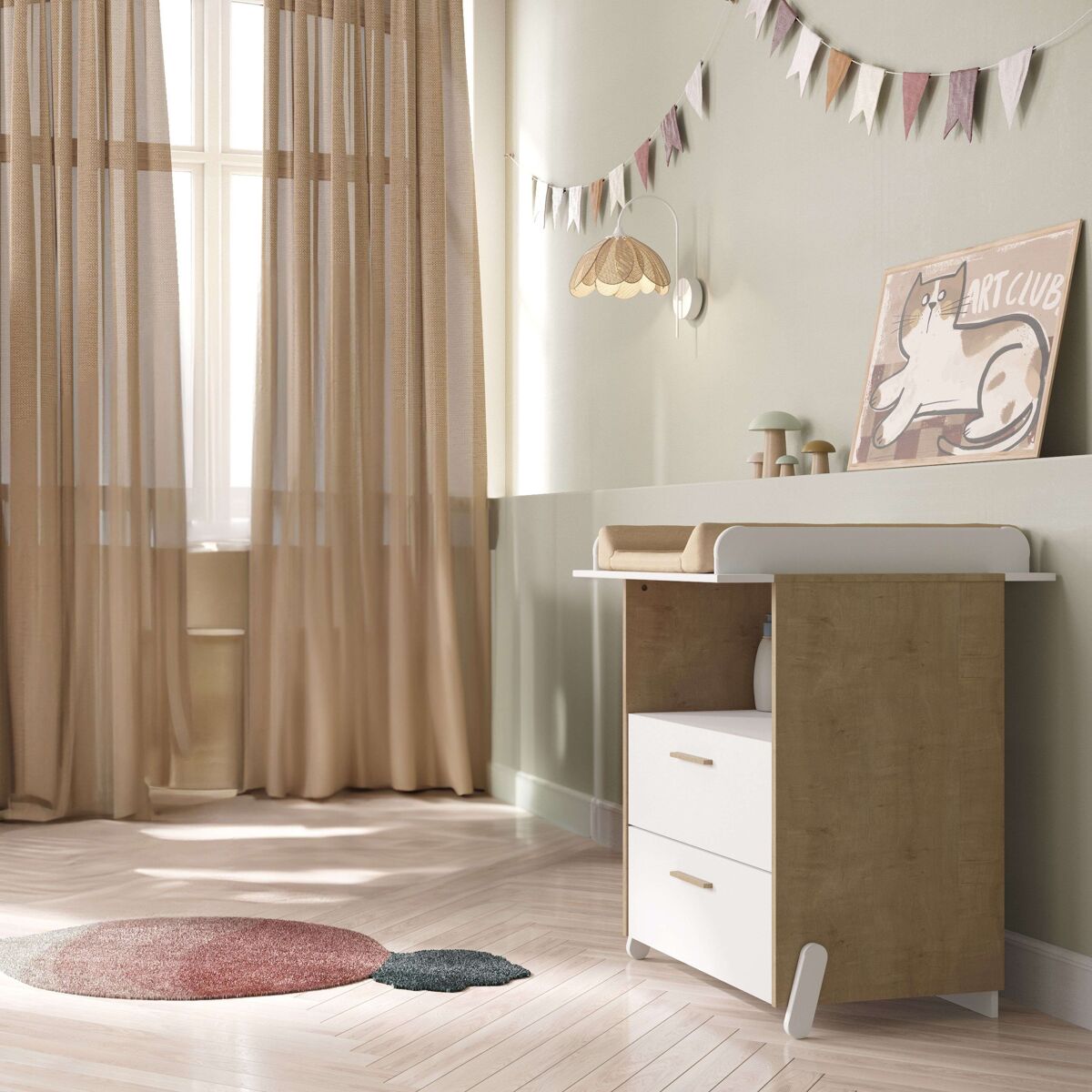 En el corazón del dormitorio de todo niño, donde la fantasía se encuentra con la realidad, está la cómoda infantil Naili. Este mueble no es sólo un lugar donde guardar objetos, sino un portal a un mundo donde cada cajón esconde cuentos de hadas y aventuras épicas. Con su encantador diseño en roble Hamilton y detalles en blanco mate, la cómoda Naili es más que un mueble: es una compañera para los sueños y la imaginación de los más pequeños. Aporta magia a los dormitorios infantiles con la cómoda para niños Naili. Con 2 amplios cajones en un elegante acabado de roble Hamilton y detalles en blanco mate, es perfecta para guardar los tesoros y los sueños de la infancia. Su encantador diseño no sólo embellece, sino que inspira aventuras e historias. Ideal para mantener organizados juguetes y recuerdos, la cómoda Naili es el toque de fantasía que necesita toda habitación infantil. Añádela al carrito y empieza el encanto.