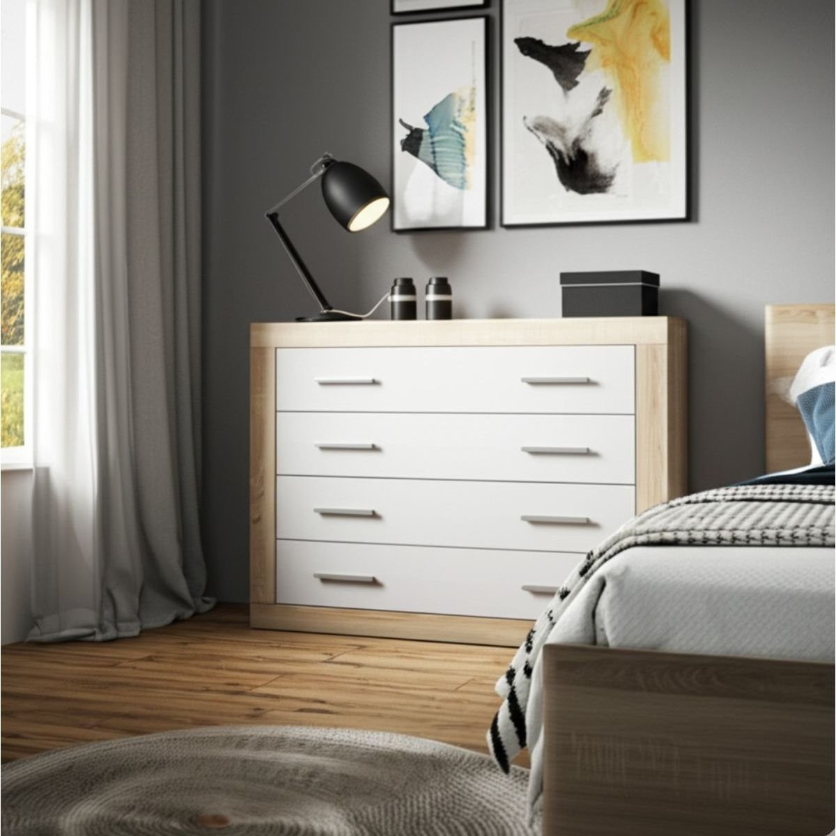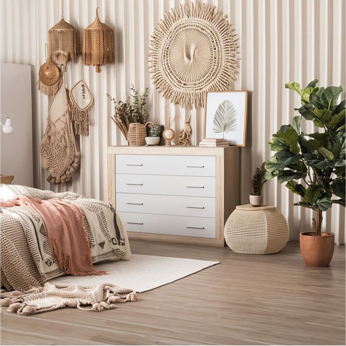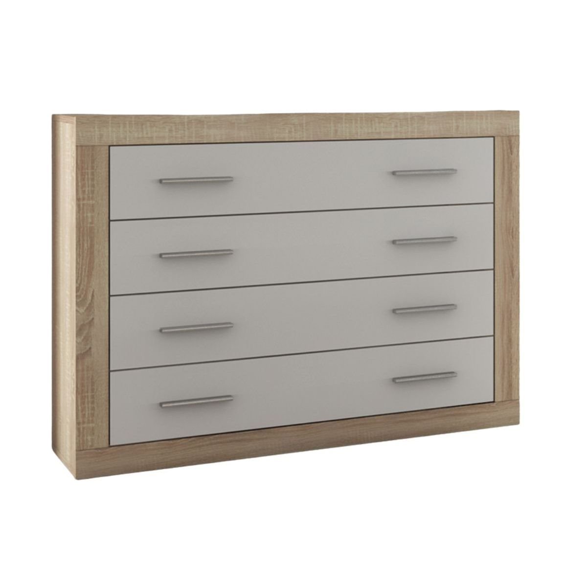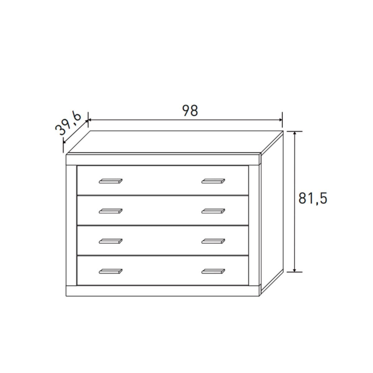 La cómoda modelo Lara es ideal para combinar con estilos actuales tanto en dormitorios adultos como juveniles o infantiles. Cuenta con 4 amplios cajones en los que podrás organizar ropa, accesorios, bolsos o lo que tu necesites. Sus tiradores son discretos y horizontales y vienen con acabado en color gris para que haga contraste con el mueble.