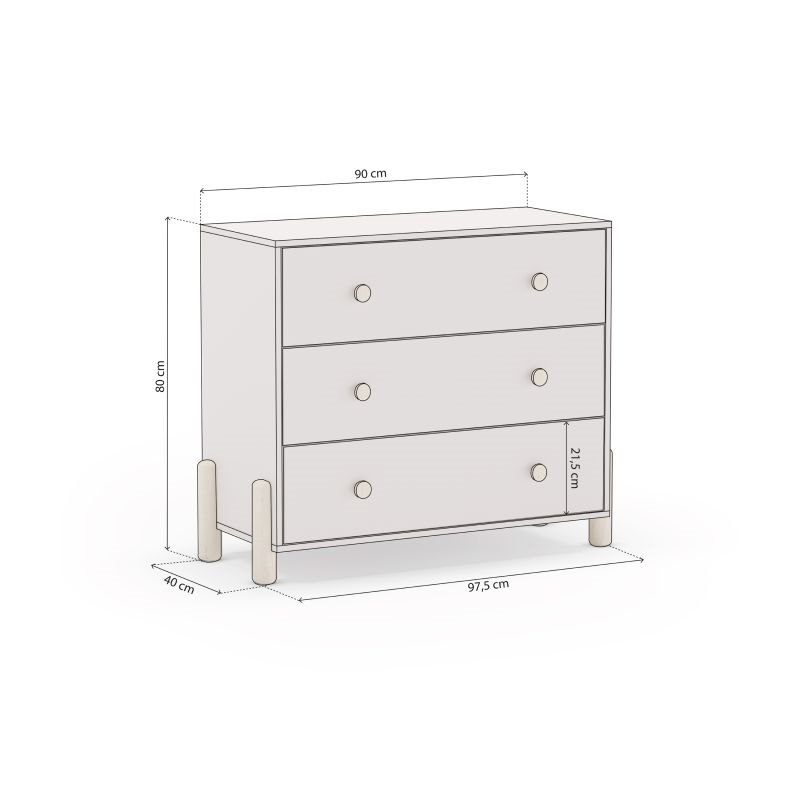 Esta cajonera destaca por su estructura robusta y por la cuidada selección de materiales en su fabricación. Cada uno de sus tres cajones ofrece una amplia capacidad de almacenaje. El sistema de apertura es cómodo y seguro, incorporando guías metálicas de suave deslizamiento que facilitan su uso diario.