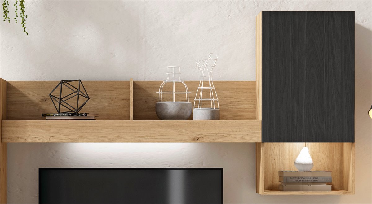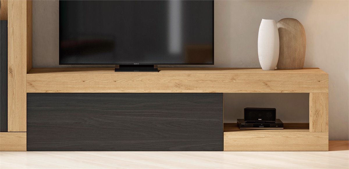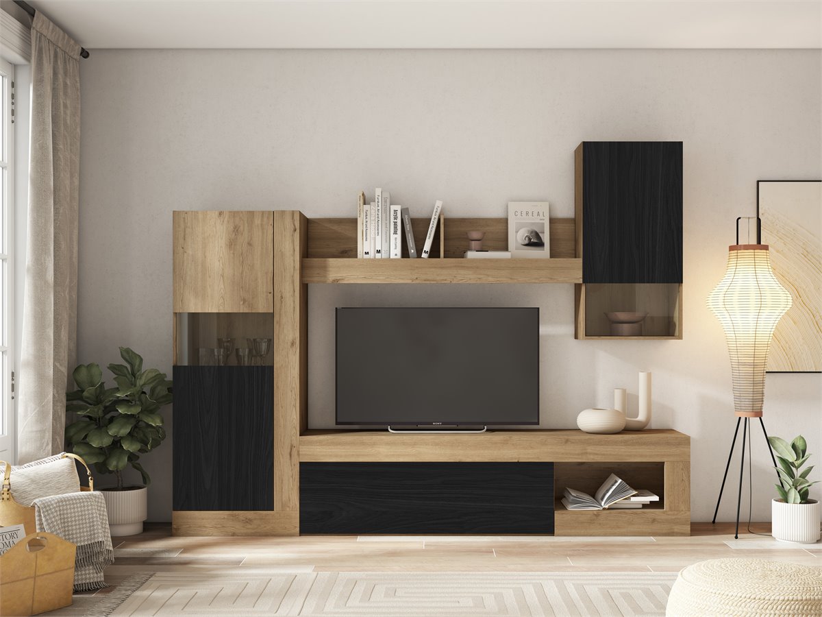 Sin duda, la composición salón FERRARA se ha convertido en un compacto de TV digno de portada de revista. Con acabados de madera en perfecta combinación con los negros, crean un estilo sobrio y elegante que desprende distinción. Estamos seguros que será el centro de atención de todas las miradas de tus invitados. Por un precio muy económico, tendrás el equipamiento necesario para tu salón. Compleméntalo con un sofá e voilà, el salón de tus sueños al alcance de tu mano. Medidas: 265 Ancho; 210 Alto 39,6 Fondo cm. Color base natural. Color complementario bocamina. Iluminación LED opcional. En Conforama encontrarás un amplio catálogo de mobiliario para tu hogar siempre al mejor precio. Compra la mayor calidad del mercado a precios competitivos gracias a nuestras ofertas y descuentos.