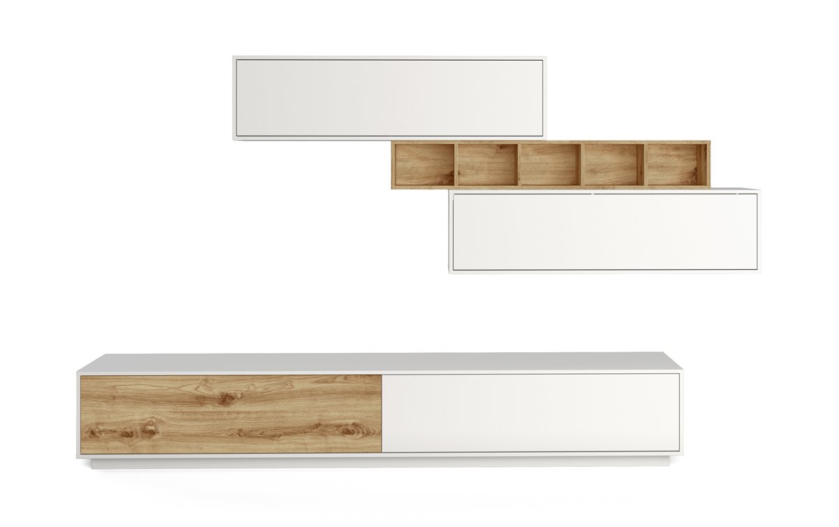 Transforma tu sala de estar con estilo y funcionalidad con el Compacto TV SOLANO. Con sus elegantes acabados en melamina blanca y roble, este mueble de 297 cm de ancho es la solución perfecta para tu entretenimiento en casa. Aprovecha sus generosas dimensiones de 297anx180alx50fon cm para organizar tus dispositivos electrónicos y accesorios de televisión de forma ordenada. Haz de tus momentos frente al televisor una experiencia única con este moderno y espacioso mueble.