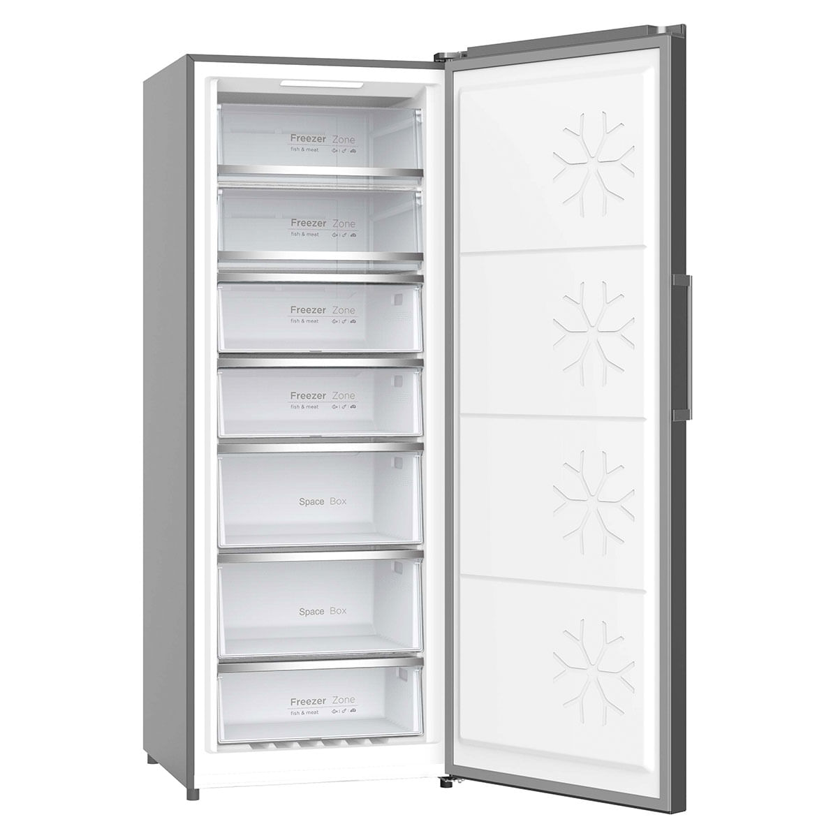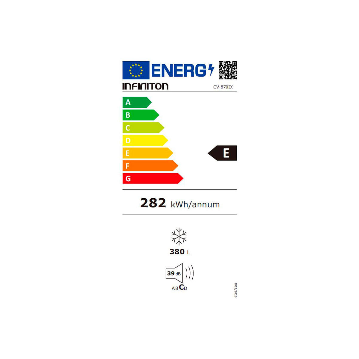 Con el congelador vertical CV-870IX de Infiniton la calidad y eficiencia están más que aseguradas. Este potente congelador te ofrece la última tecnología y un diseño elegante que encajará a la perfección en tu cocina. La tecnología Total No Frost garantiza que nunca tendrás que preocuparte por la molestia de la formación de hielo en tus alimentos. Mantén tus productos congelados frescos y listos para usar en cualquier momento, sin la necesidad de descongelar manualmente. Gracias a la tecnología Inverter, el CV-870IX es eficiente y silencioso, manteniendo tus alimentos congelados en perfectas condiciones sin ruido innecesario. Además, el control digital de temperatura on door te da un control preciso sobre el clima interior para una conservación óptima. La puerta de acero inoxidable antihuellas no solo aporta un toque elegante, sino que también se mantiene impecable en todo momento. Con una capacidad espaciosa de 380 litros, tendrás espacio más que suficiente para almacenar todos tus alimentos congelados. Los accesorios interiores son la clave para una organización eficiente. Con 3 cajones Big Box, 2 cajones Crisper Box y 2 compartimentos superiores Flap area, tendrás un lugar designado para cada tipo de alimento. El congelador CV-870IX de Infiniton también viene con funciones adicionales que hacen que tu vida sea más fácil. Por su parte, la luz LED interior ilumina el interior de forma eficiente. ¡Ya lo sabes! ¡Consigue tu congelador vertical de Infiniton y disfruta de todas sus prestaciones!