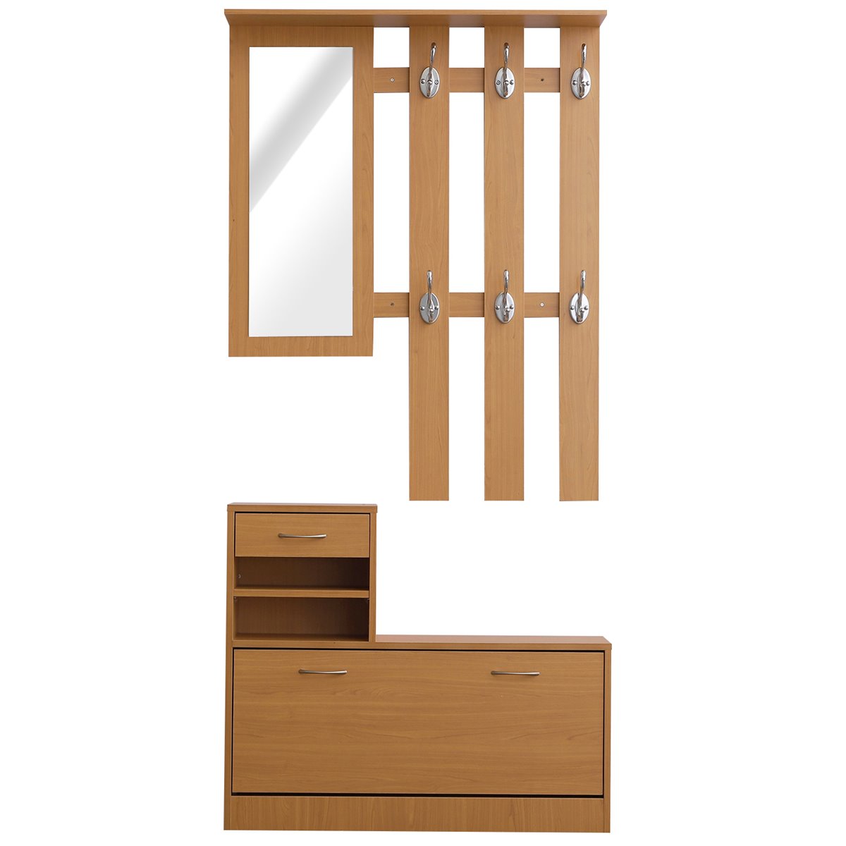 ¿Necesitas un lugar para tus zapatos y chaquetas? Este mueble de recibidor, 3 en 1 es la solución ideal. Combina un zapatero con una puerta abatible y dos estantes, además de un cajón y dos estantes adicionales en la parte superior para pequeños objetos. Incluye un espejo y 6 ganchos al lado para colgar chaquetas, gorros o bufandas. ¡Perfecto para organizar tu entrada y mantener todo en orden!
