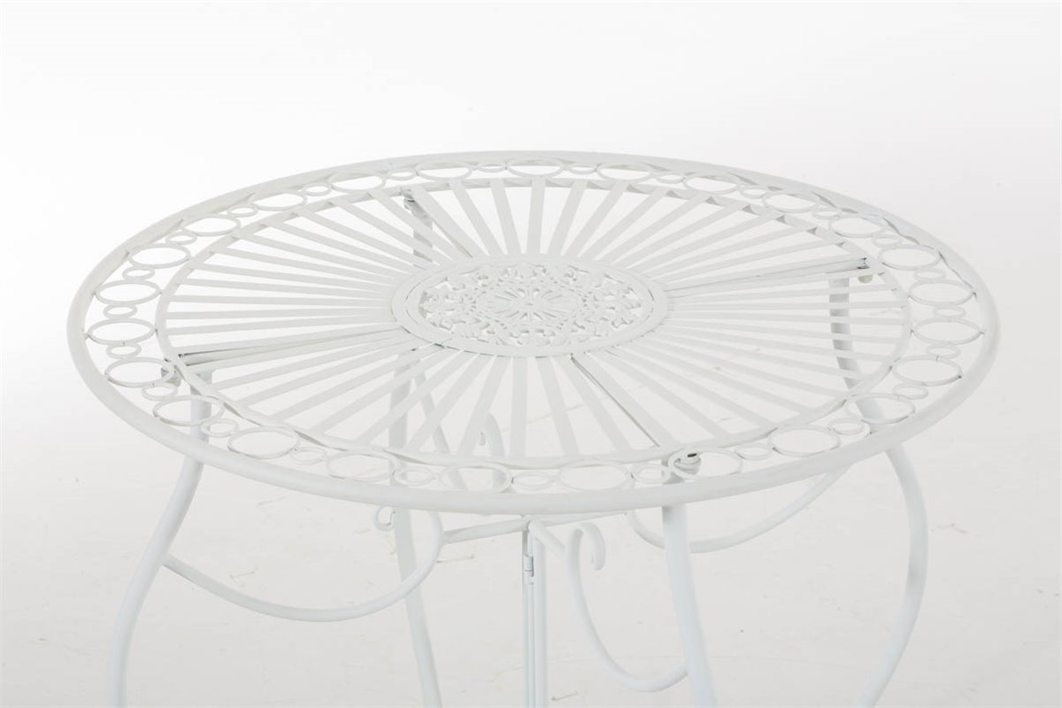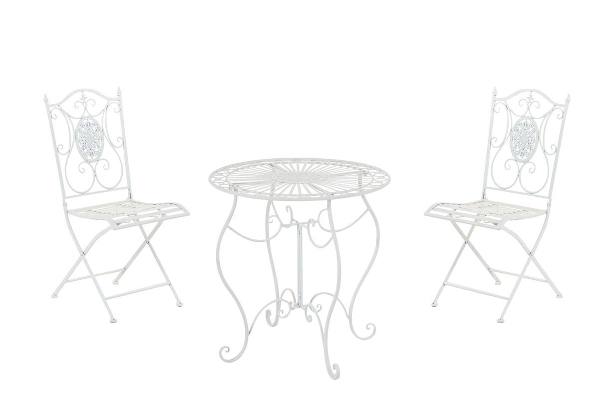 Este juego de jardín Aldeano de una mesa y dos sillas no pasa desapercibido gracias a su diseño y estilo. El conjunto tiene un estilo rústico resaltado por sus decoraciones terminadas a mano con detallada precisión, eso hace no solo que este juego de jardín resalte sino que lo hace combinable con otros conceptos decorativos. El juego de jardín consta de una mesa y dos sillas plegables. Tanto la mesa como las sillas son de hierro galvanizado. Este juego es muy práctico ya que una vez no se necesitan las sillas, o si se quiere tener más espacio, se pueden plegar y guardarlas. El diseño de los muebles transporta a épocas pasadas pero no renuncia a la funcionalidad y a la estabilidad de los muebeles de hoy en día.