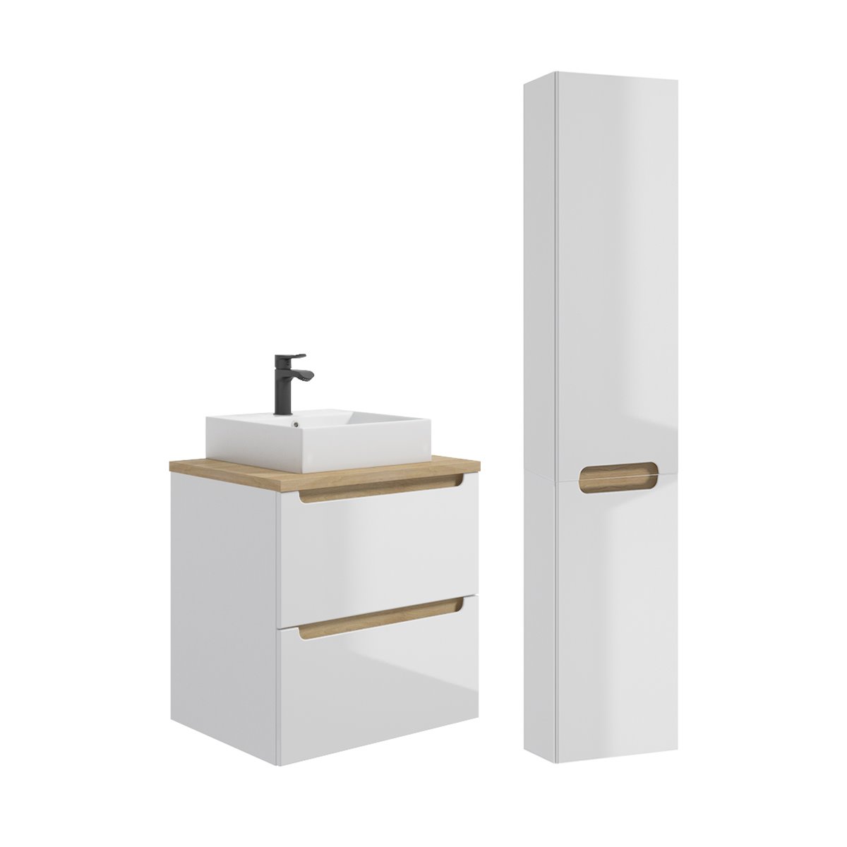 Conjunto de muebles con lavabo individual 60cm 2 cajones y columna Livia Blanco y Madera