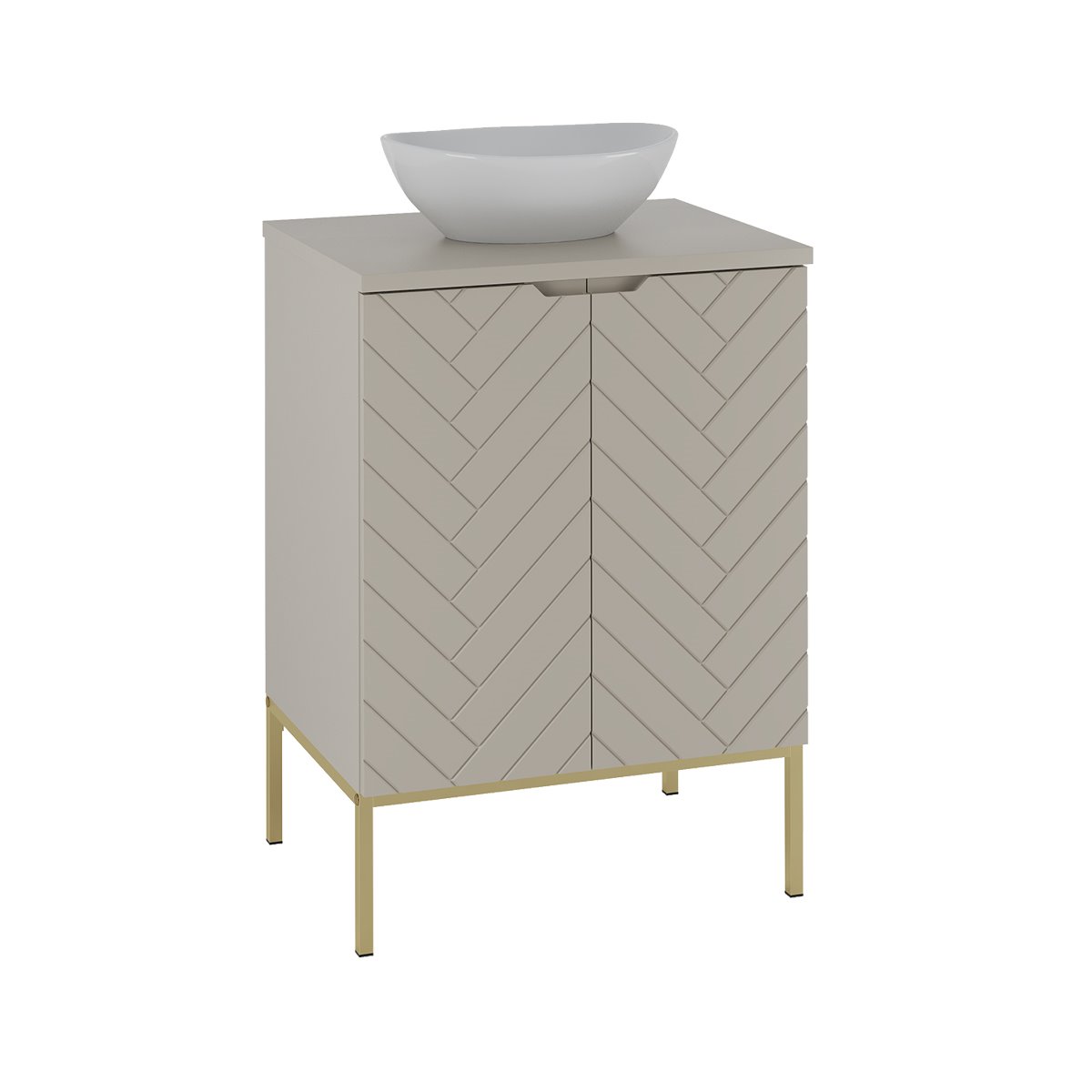 Conjunto de muebles con lavabo individual 60cm 2 puertas sobre patas y columna Daria Cachemira
