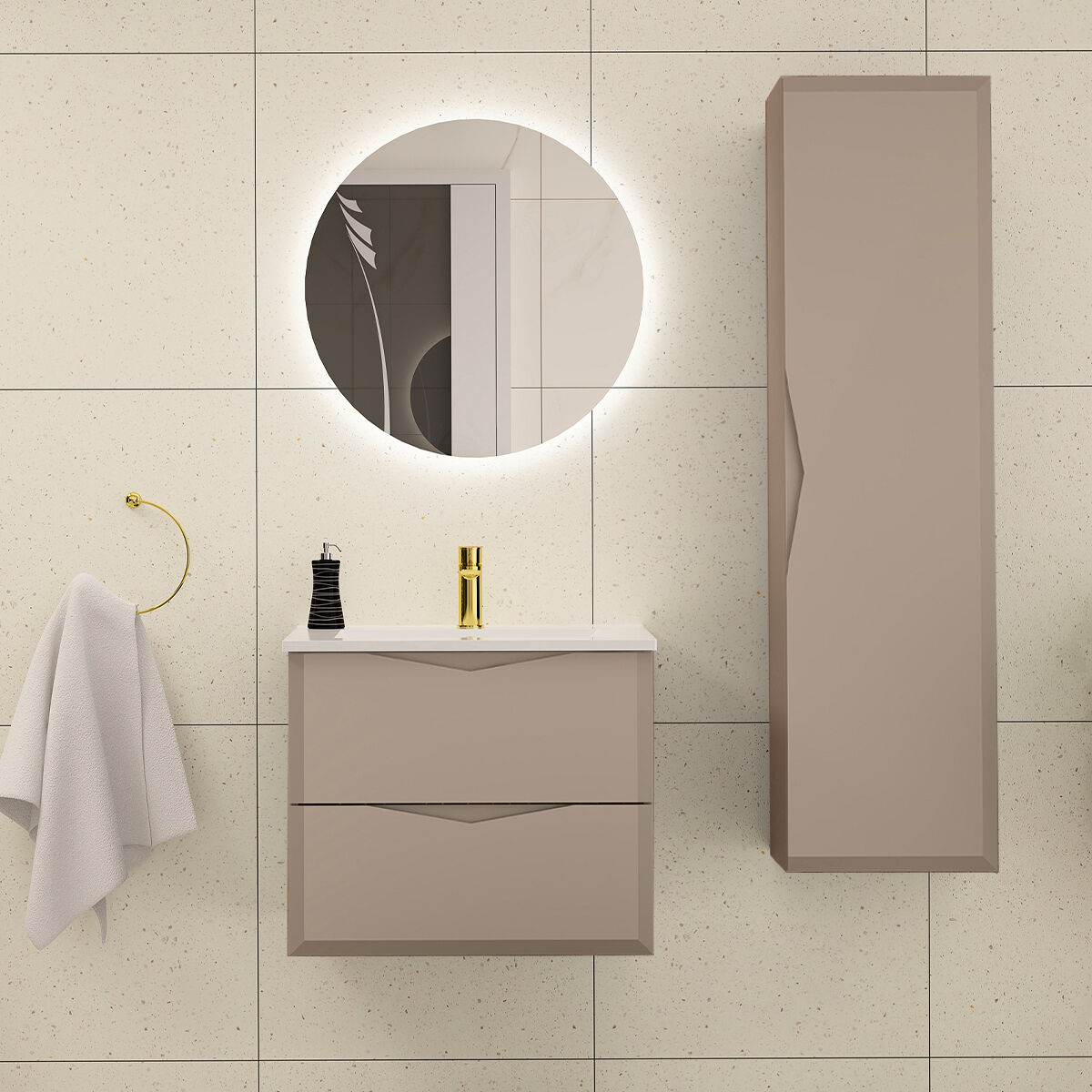 Conjunto de muebles con lavabo individual encastrado 60cm y columna Ellie Cachemira