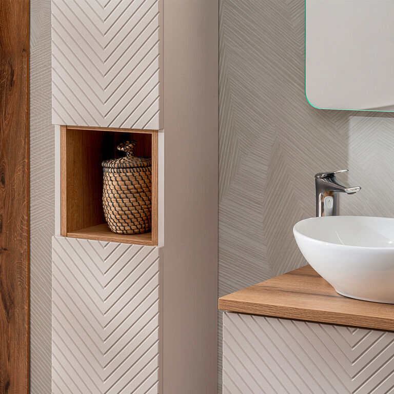 Conjunto de muebles con lavabo individual encastrado 80cm y columna Manoa Cachemira y madera