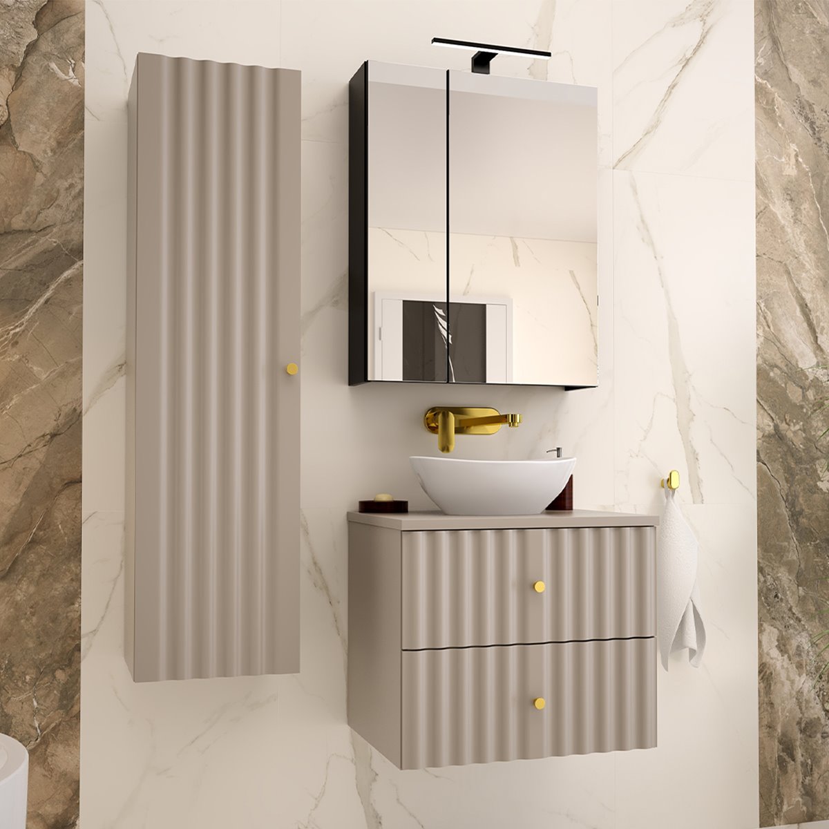Conjunto de muebles con lavabo individual 60cm y columna Izae Cachemira