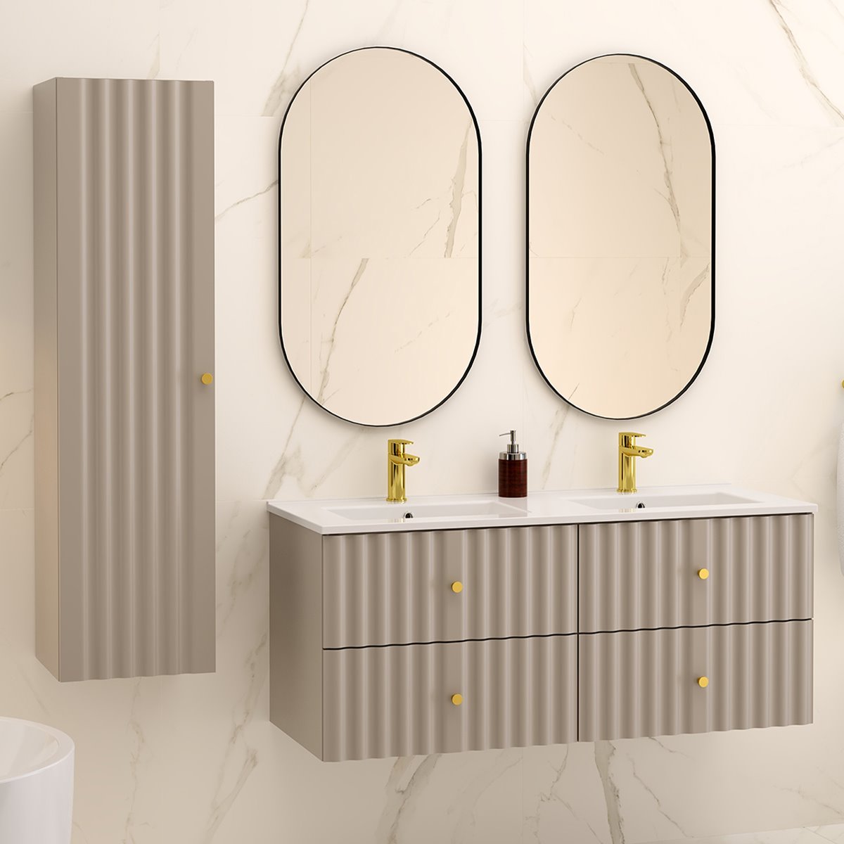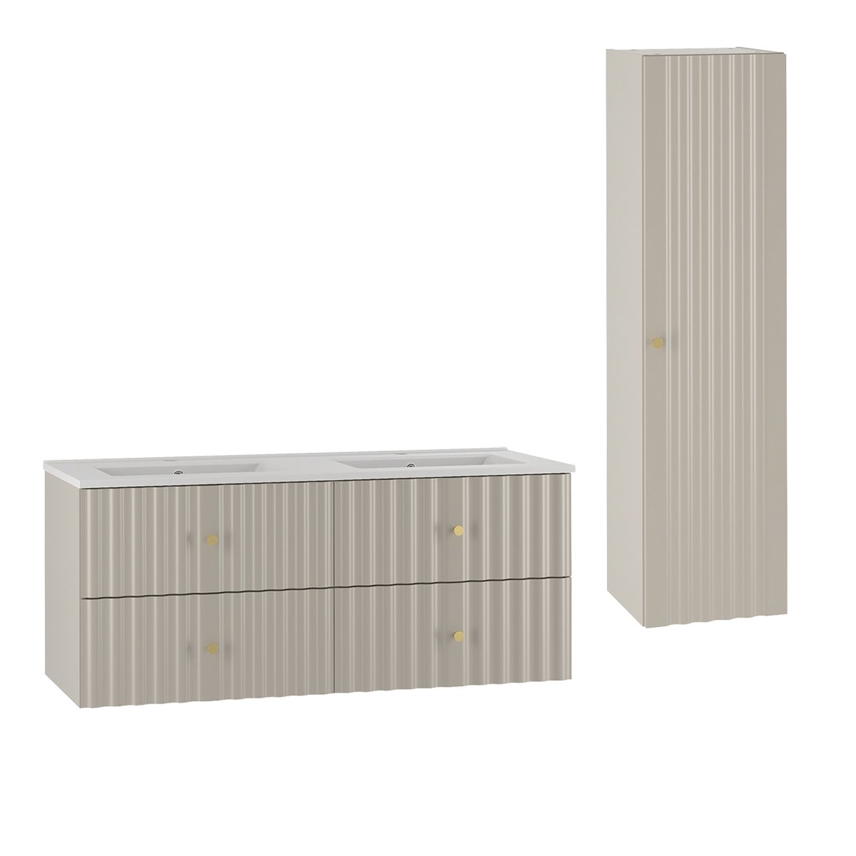 Conjunto de muebles con doble lavabo encastrado 120cm y columna Izae Cachemira