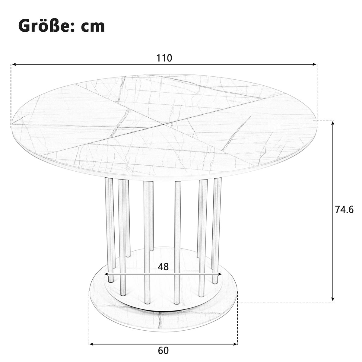 Dimensiones: 110 × 110 × 74,6 cm