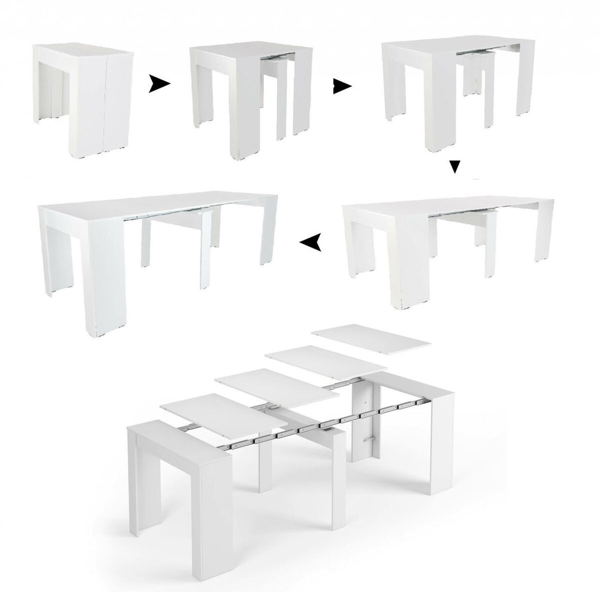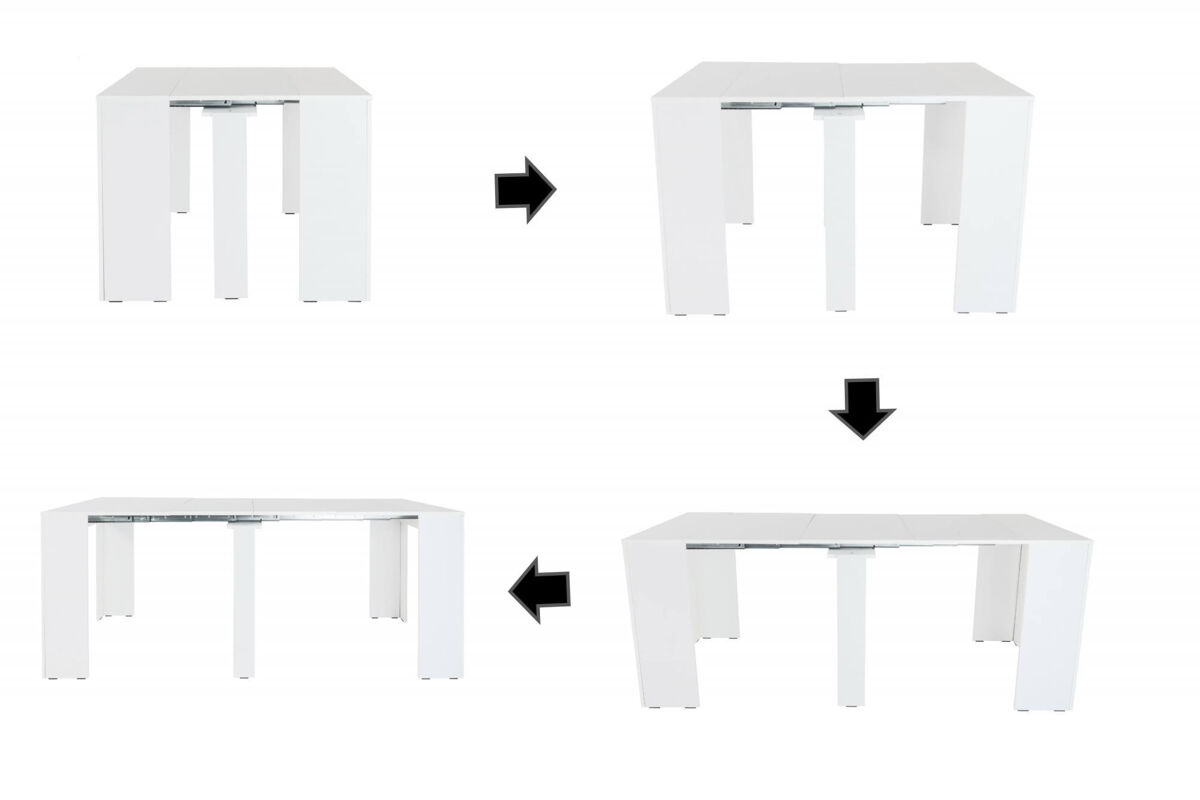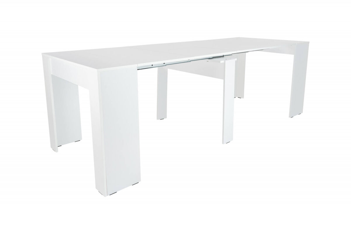 CONSOLA EXTENSÍVEL - Mesa com extensões, Consola multiusos, Mesa de jantar extensível até 10 lugares, 90/237x51h78 cm, Branca.