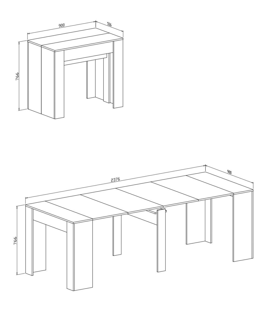ESTRUTURA E UTILIZAÇÃO - Consola extensível de 90 cm até 237 cm com inserção de quatro extensões de 46,5 cm na parte central do tampo - Artigo de decoração equipado com um prático sistema de abertura que permite inserir confortavelmente as extensões que serão guardadas em outro local afastado quando não estiver em uso - As guias metálicas garantem resistência e durabilidade, apoiando com segurança a extensão e os convidados em sua mesa - Este mecanismo extensível torna este móvel perfeito para móveis de sala de estar, sala de jantar, cozinha, escritório ou escritório como uma mesa, entrada ou corredor - A mesa de jantar extensível totalmente aberta pode acomodar confortavelmente até 10/12 pessoas.