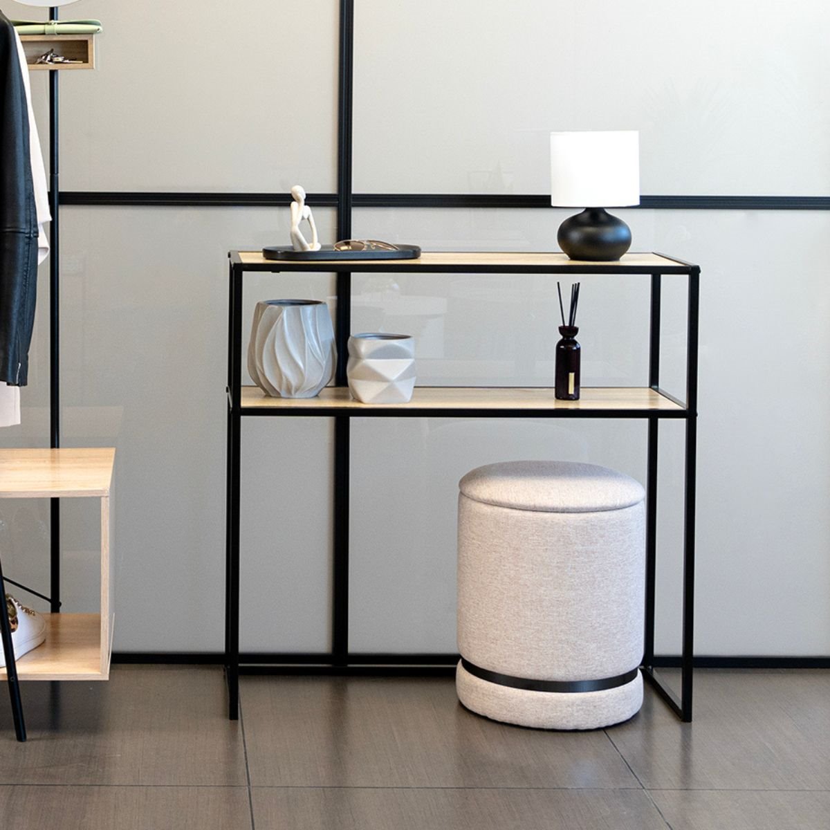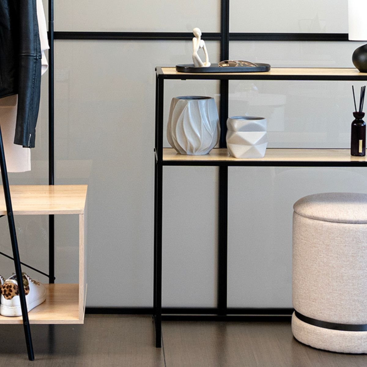 La consola modelo MOA de la marca Vinthera es la elección perfecta para aquellos que buscan una combinación de estilo y funcionalidad. Fabricada con materiales de alta calidad, su estructura robusta de metal se complementa con la melamina de madera resistente, garantizando durabilidad y un atractivo visual que se adapta a cualquier decoración.