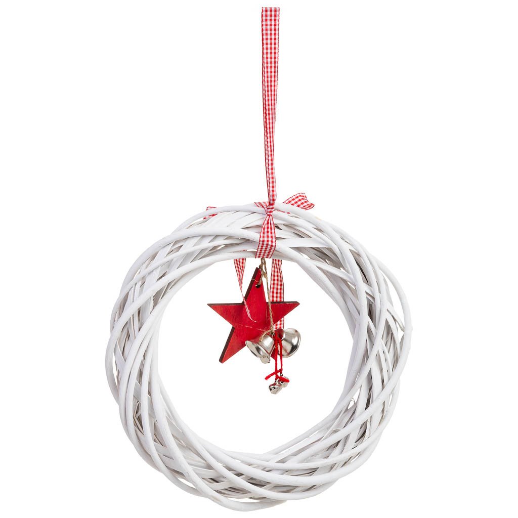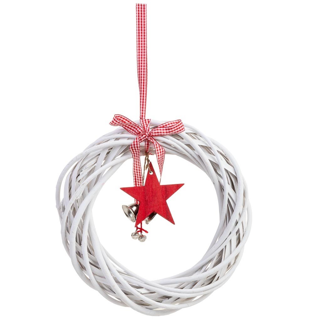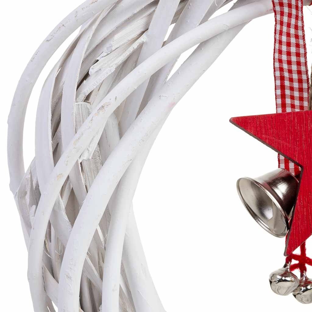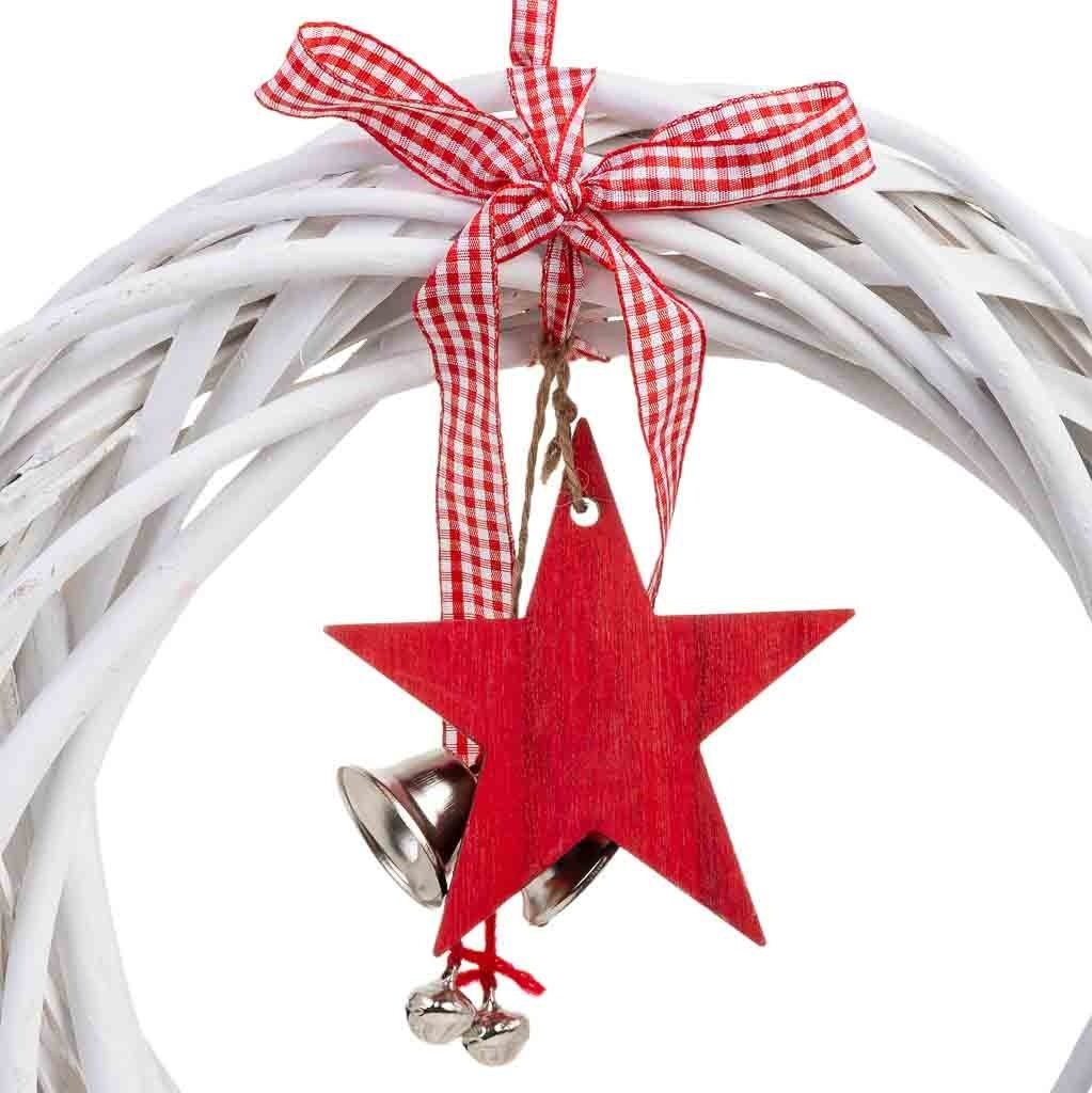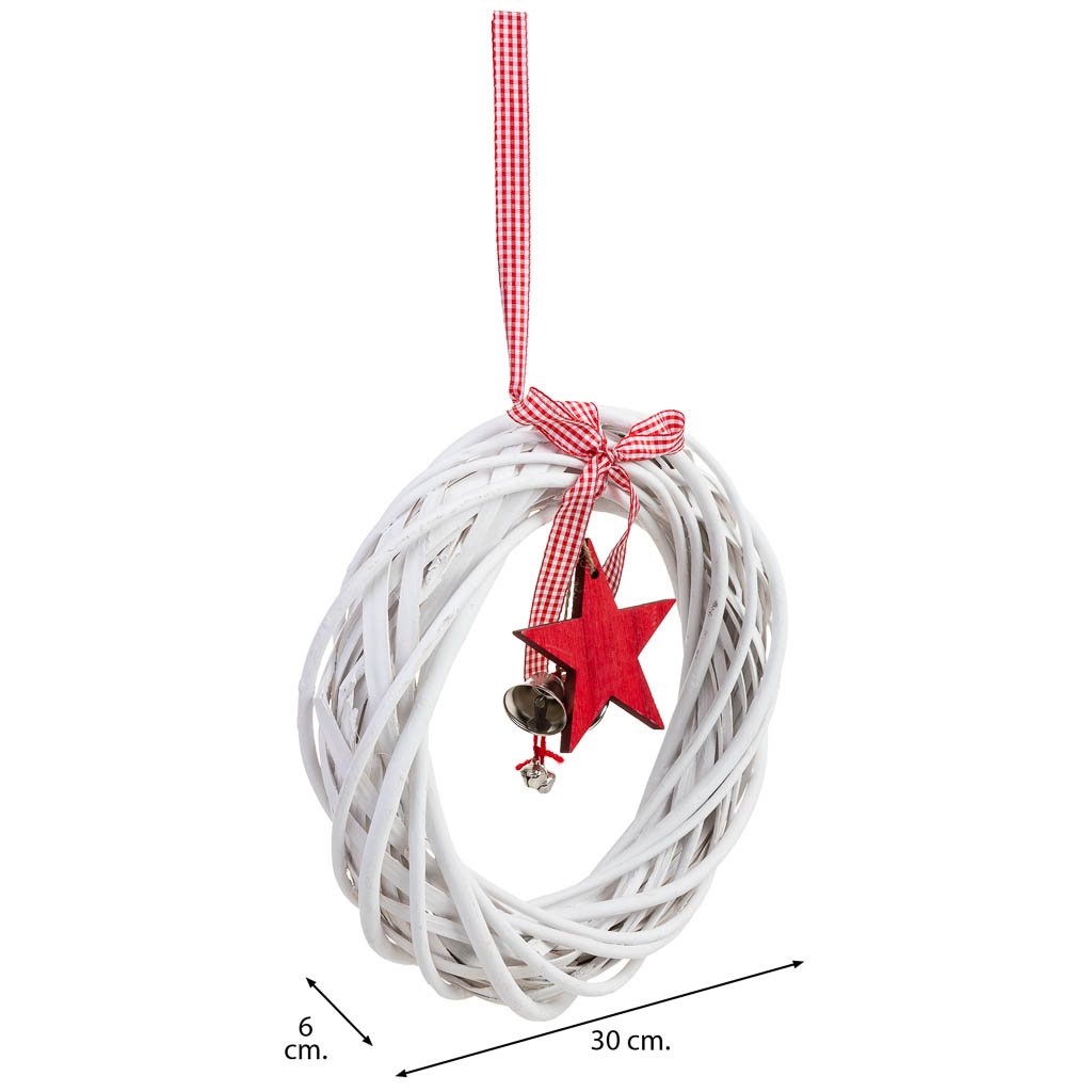 Esta corona decorativa de mimbre tiene un diámetro de 30 cm y una altura de 6 cm. Perfecta para colgar en puertas o paredes, su diseño natural de mimbre añade un toque rústico y acogedor a cualquier ambiente.