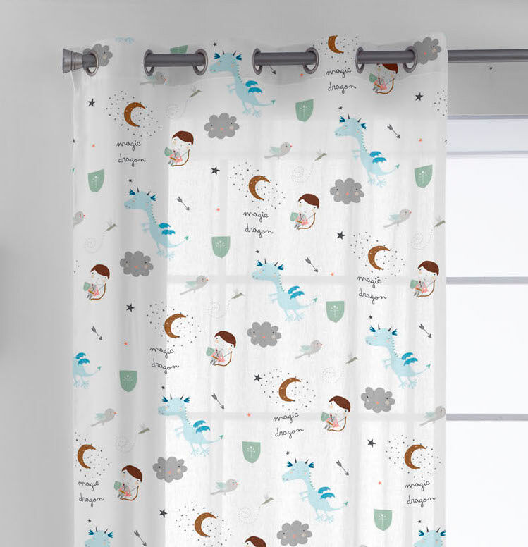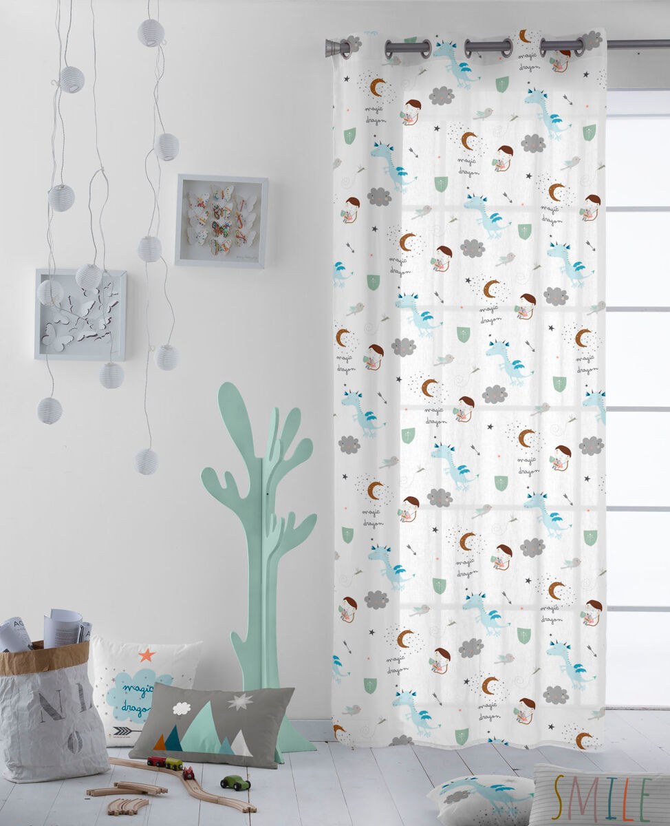 Cortina de interior con tejido de algodón suave y fácil de lavar. Diseñada para colocar en una barra mediante 8 ollaos metálicos. Confeccionada con dobladillo