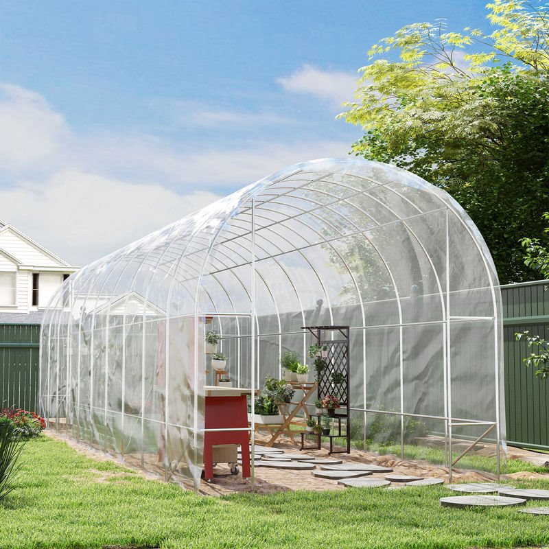 - Cubierta de invernadero adaptable que puede recortarse para otros usos, como muebles o equipos de exterior
