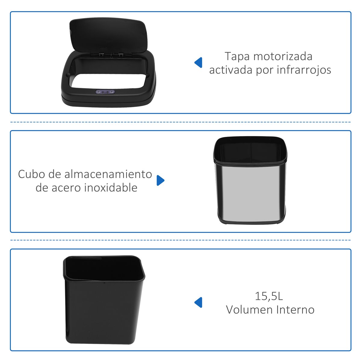 - Cubo de basura automático de 20L (volumen interno de 15,5L) con diseño elegante en acero inoxidable