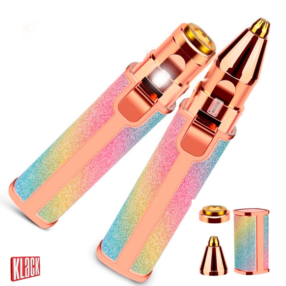 La depiladora facial para mujer de viaje 2 en 1 es una herramienta versátil diseñada para eliminar el vello facial de manera precisa y sin dolor. Cuenta con dos cabezales de corte intercambiables que se adaptan suavemente al contorno de la piel y cortan con precisión el vello no deseado.