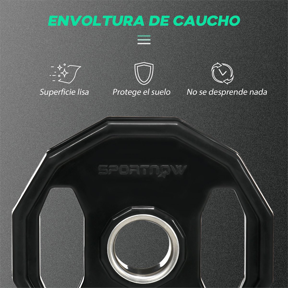¿Quieres hacer ejercicio en casa? Prueba con estos discos olimpicos de SPORTNOW. Puedes usarlos de múltiples formas, en las barras de pesas, equipos de gimnasio y de forma individual o conjuntamente. Hechos de acero resistente con un revestimiento de caucho para evitar la oxidación y la corrosión, son ideales para un uso duradero y prolongado. Con un peso total de 10 kg, son una excelente inversión para tu gimnasio personal o para crear una zona de entrenamiento completa en casa.