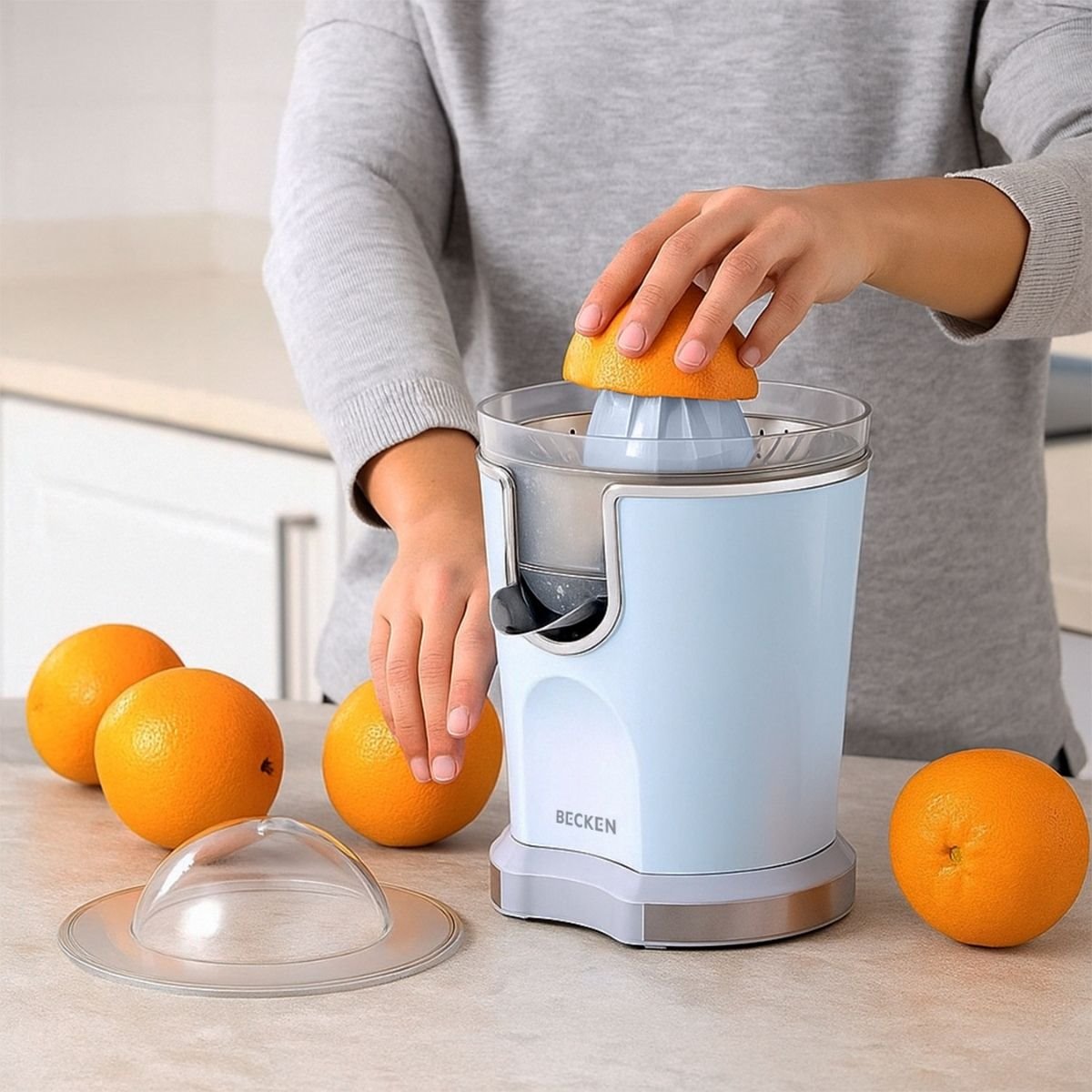 Empieza el día con tu zumo favorito de manera rápida y sencilla gracias al exprimidor eléctrico compacto Becken BCJ8767. Este modelo incorpora un regulador de pulpa, un filtro de acero inoxidable y una lengüeta de seguridad que garantiza un uso cómodo y fiable. Para mantenerlo siempre limpio, dispone de una tapa protectora para el cono que lo resguarda del polvo y la suciedad durante el almacenamiento. Además, su práctico sistema antigoteo evita derrames, mientras que el recogecables integrado facilita guardar el cable sin ocupar espacio innecesario. Con una capacidad de 230 ml y una potencia de 100W, el exprimidor Becken BCJ8767 es la elección perfecta para preparar zumos frescos de forma fácil cada mañana.