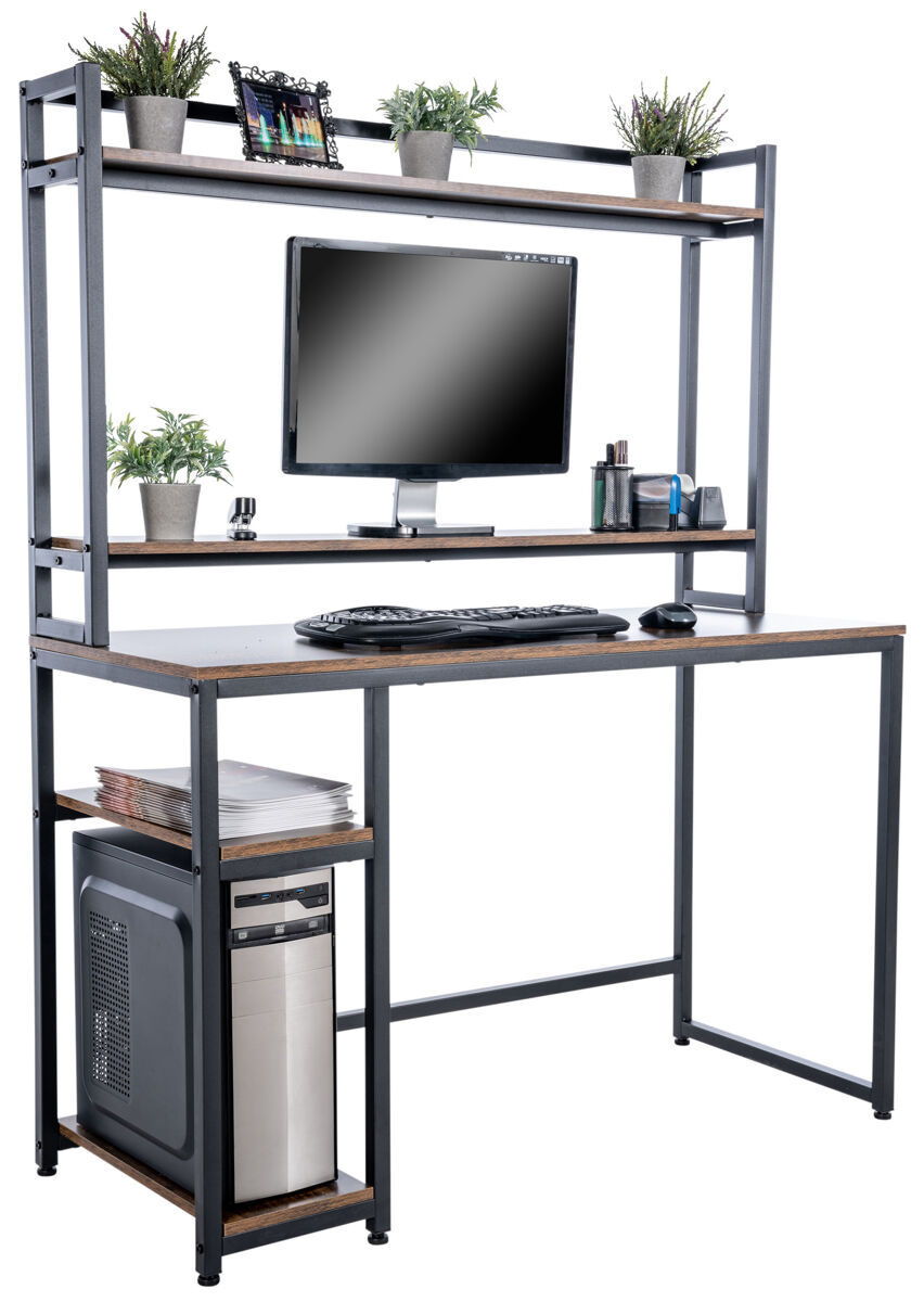 Los materiales de alta calidad en combinación con su estilo industrial, hacen que este escritorio para ordenador portátil sea un verdadero punto de atracción y cree un ambiente maravilloso de trabajo. El tablero de la mesa de 15 mm de grosor, descansa de forma estable y segura sobre un marco de tubo de acero lacado.
