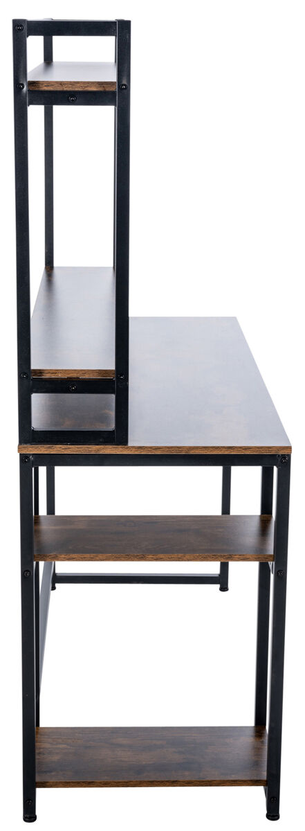La estantería adjunta ofrece suficiente espacio de almacenamiento para monitores, documentos, materiales de trabajo o decoración. La mesa está equipada con pies de plástico que evitan que se raye el suelo. La altura de los pies se puede ajustar para que la mesa se mantenga firme y estable incluso en suelos ligeramente irregulares.