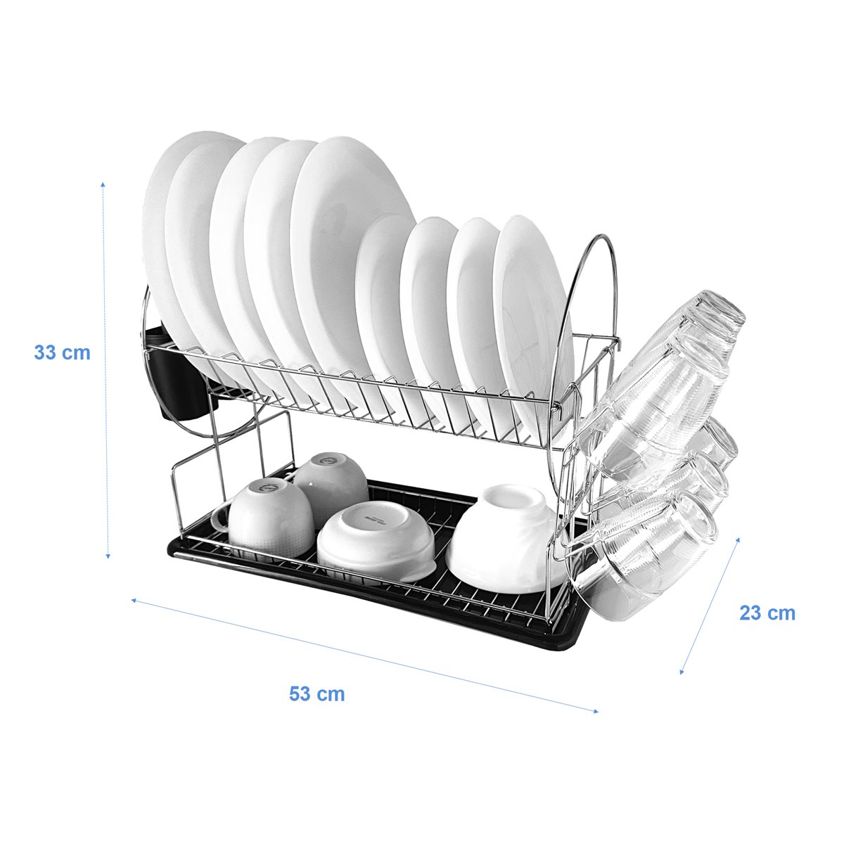 - Diseño de doble nivel: Dos niveles para un mayor aprovechamiento del espacio, lo que te permite secar más utensilios en menos espacio.