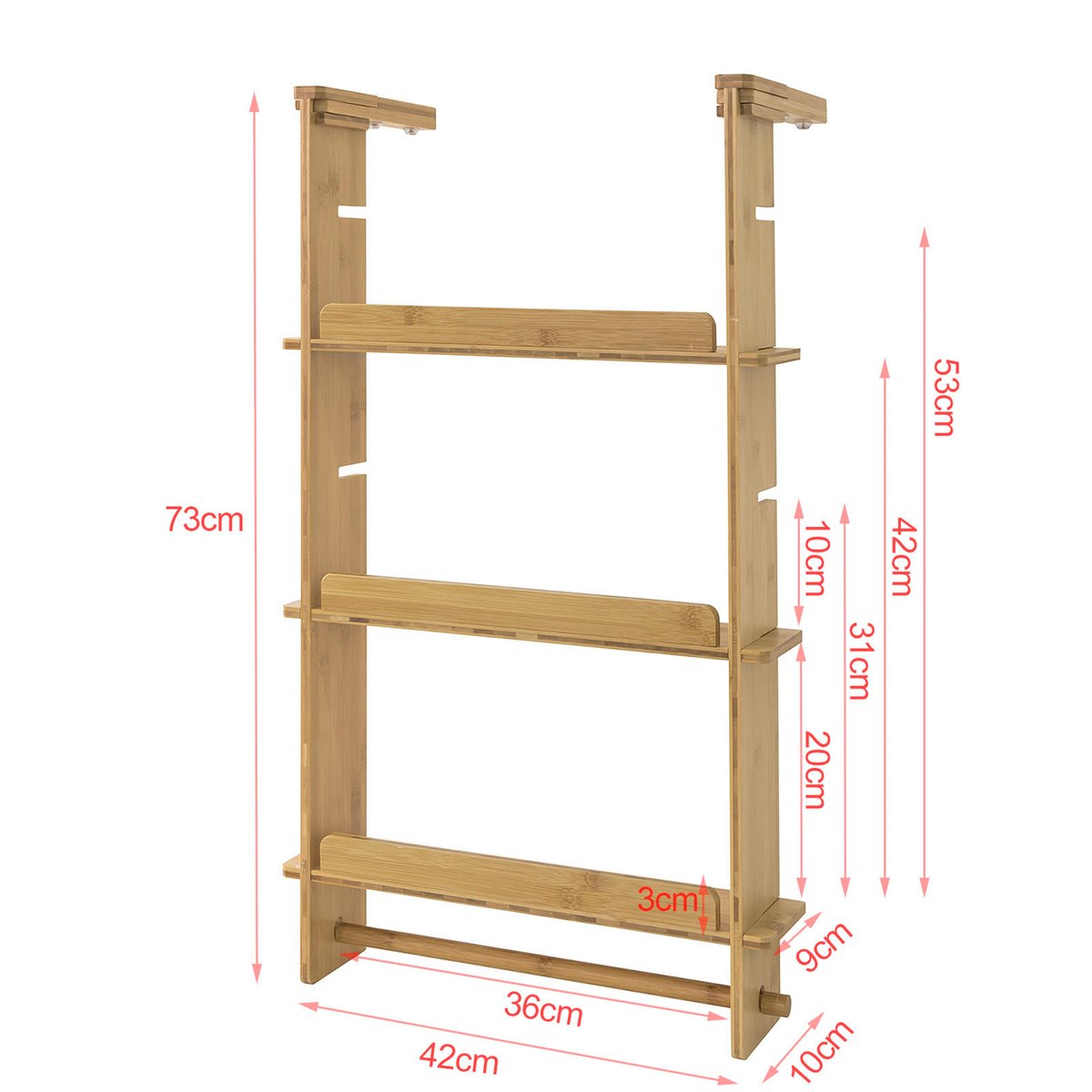 Material: Hecha de bambú. Capacidad máxima: 5 kg. Peso de envío:4 kg. MUCHO ESPACIO: Estas estanterías para especias miden 42 cm x 10 cm x 73 cm y tienen tres alturas para que pueda guardar todos sus condimentos.Con estos prácticos especieros para el refrigerador, podrá guardar sus especias y condimentos de distintos tamaños y tenerlos siempre a mano.Ideal para especias, atomizadores y mucho más.