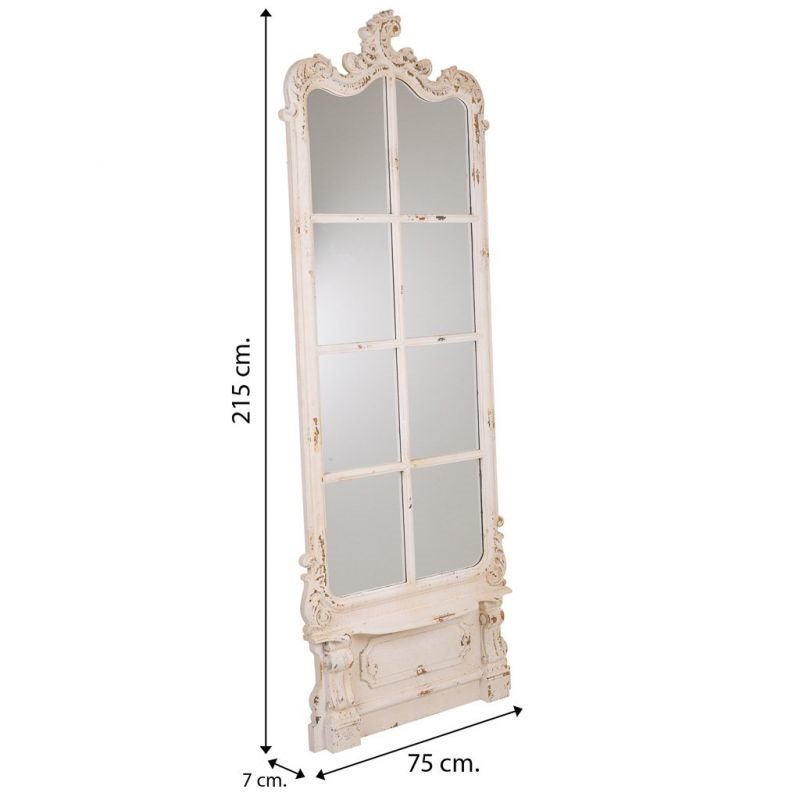 Con dimensiones de 75x7x215 centímetros, este espejo de madera es una declaración de estilo en tu hogar. Su marco detallado y su tamaño generoso hacen que sea una pieza central en cualquier habitación.