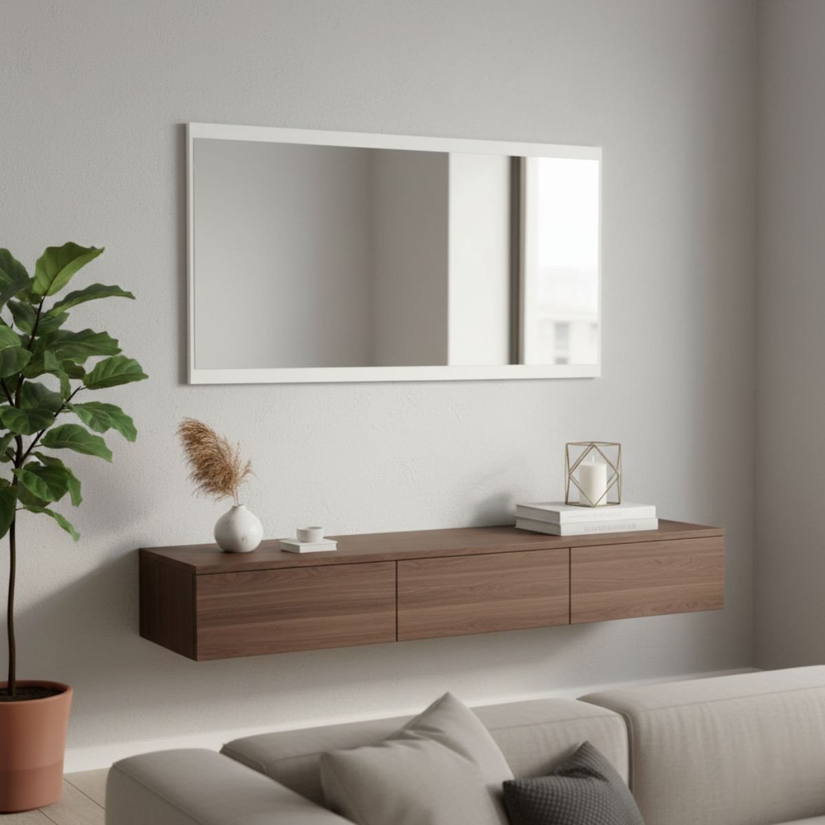 Su marco, fabricado en melamina de alta calidad y con un acabado en color blanco mate, ofrece una estética moderna y limpia que combina con todo tipo de decoraciones. Ideal para ese último vistazo antes de salir de casa o para completar una zona de almacenaje o tocador. Instálalo en vertical u horizontal según el espacio disponible y sácale el máximo partido a tu hogar.