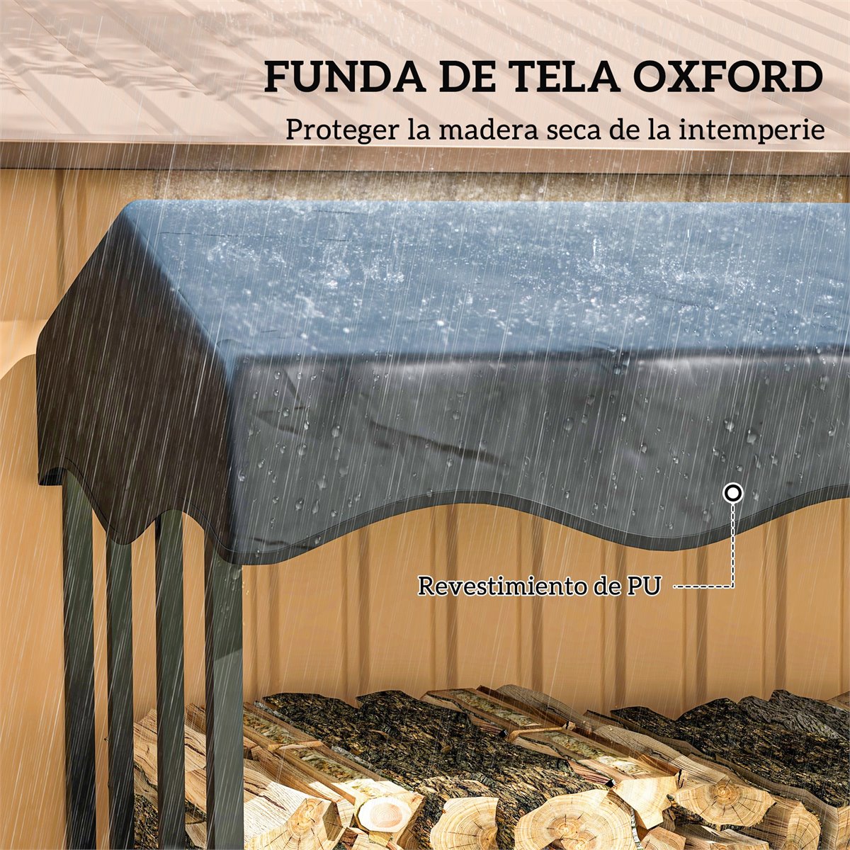 Mantén tu leña organizada y seca con este leñero de Outsunny. Su gran capacidad puede albergar hasta 1200 kg de leña cortada. El cobertor de tela Oxford 450D con recubrimiento de PU protege tus troncos a la intemperie. Dispone de diez anillos laterales que añaden funcionalidad y seguridad extra. Es un accesorio indispensable para los que queman leña. ¡Haz de este leñero la solución perfecta para cualquier espacio!