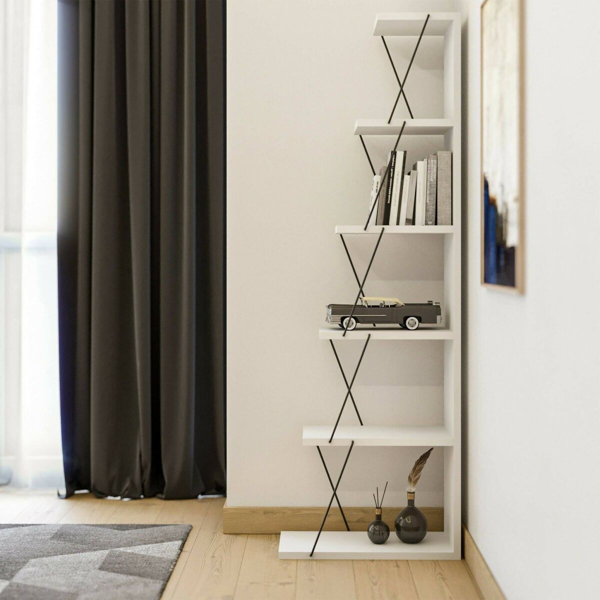 CARACTERÍSTICAS TÉCNICAS - Acessório de decoração versátil, projetado para fácil integração com outros móveis - Embalagem resistente, projetada para comércio eletrônico - Material: painel melamínico de 18mm, Metal - Informações adicionais: Pode ser fixado na parede - Numerosas prateleiras - Adequado como quarto separador.