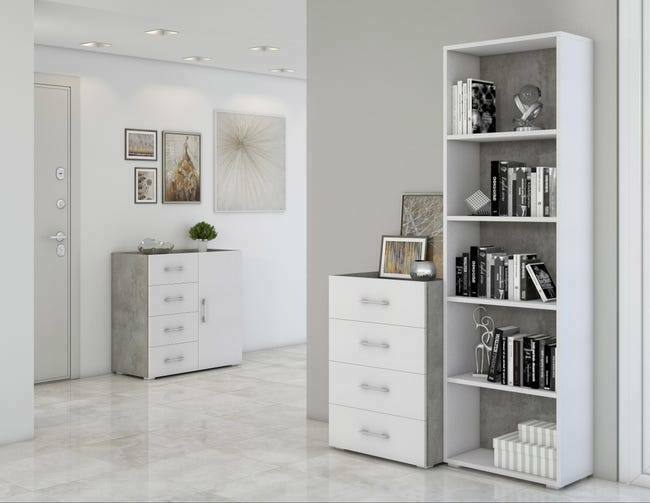 Estante Girasola, Biblioteca com 4 prateleiras reguláveis, Estante para livros, Armário de parede com prateleiras, 100% Fabricado em Itália, 60x30h195 cm, Branco e Cimento.