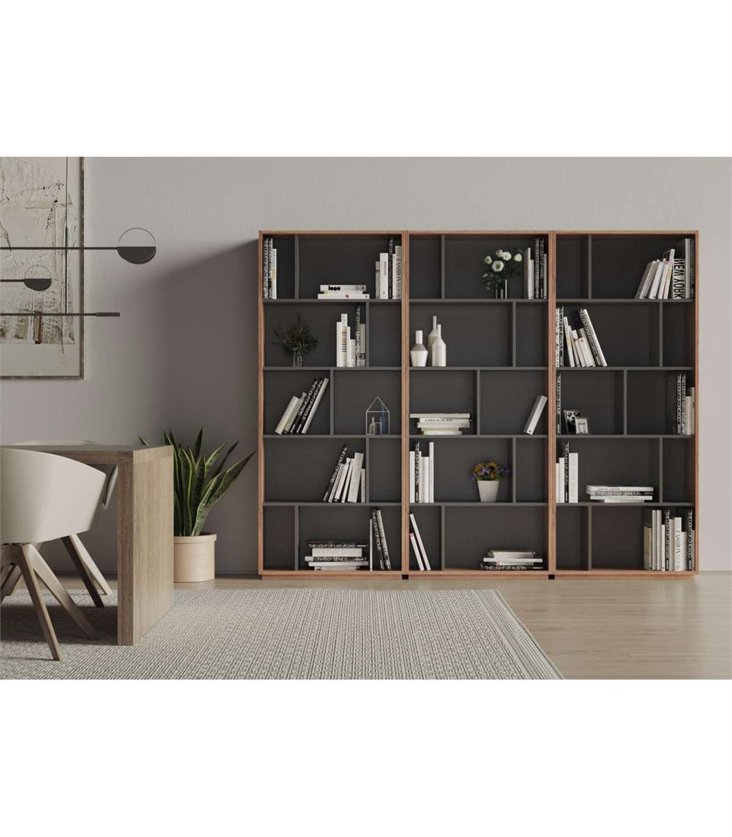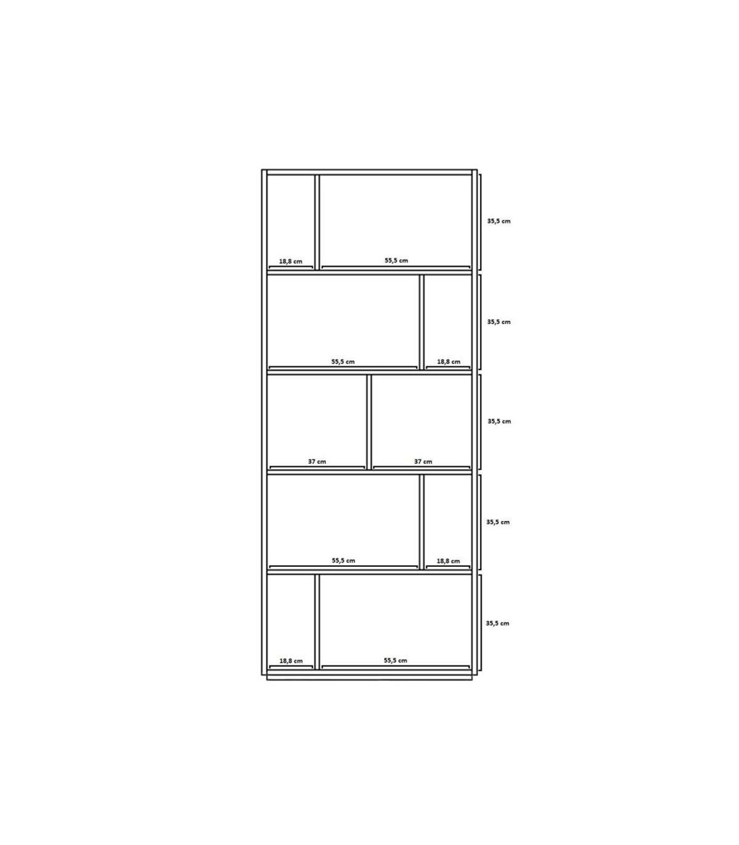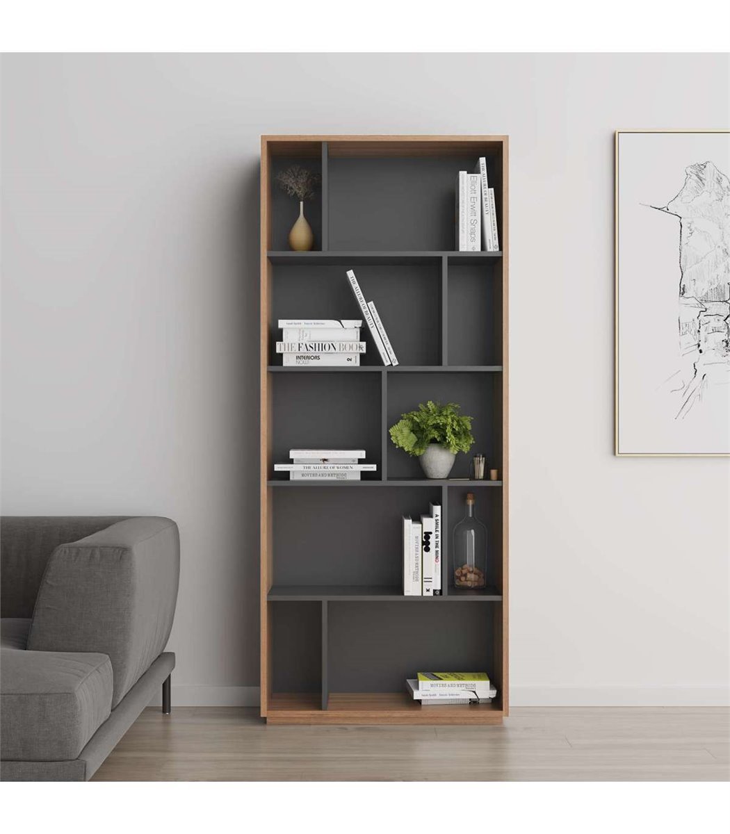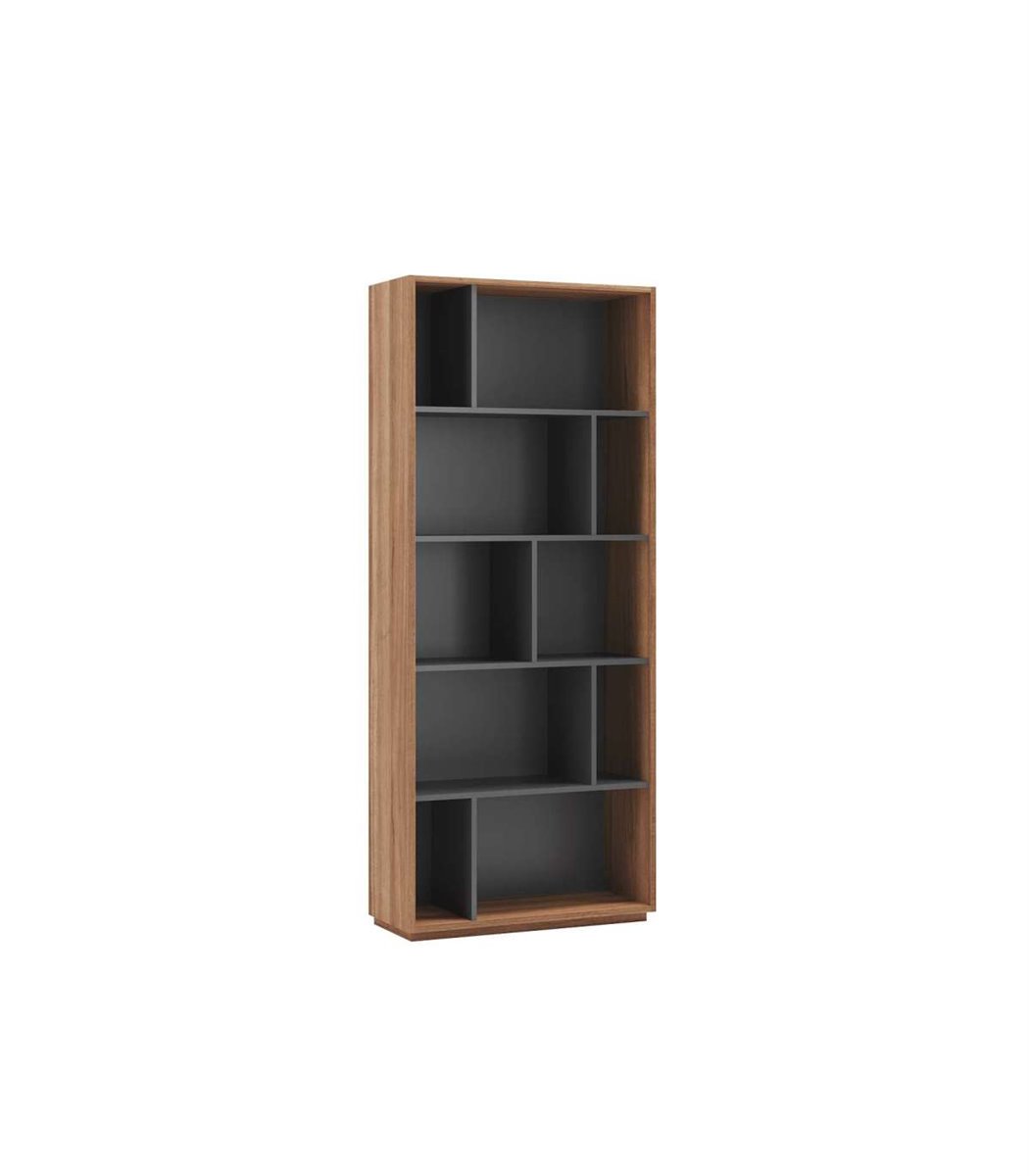 La estantería librería fabricada en melamina de calidad con acabado en color nogal combinado con grafito, es un mueble versátil y funcional que ofrece 10 compartimentos de distintos tamaños, distribuidos en 5 alturas. Esta estantería es ideal para organizar y exhibir libros, decoraciones u otros objetos en tu hogar u oficina. La melamina de alta calidad garantiza su durabilidad y resistencia, mientras que el diseño de múltiples compartimentos proporciona opciones de almacenamiento personalizadas. Con esta estantería, podrás mantener tus pertenencias ordenadas y accesibles de manera elegante.