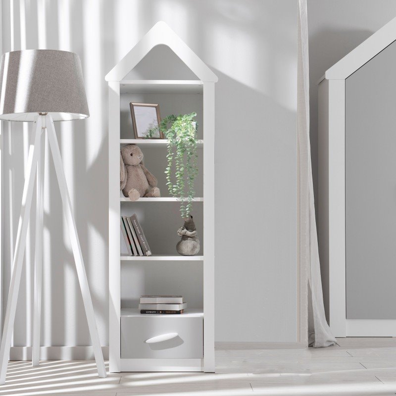 Estantería Iris, es perfecta para combinar con la colección Iris de MueMue. La estantería incluye 4 baldas extraíbles y un cajón. Es ideal para mejorar las opciones de almacenaje de los dormitorios de los niños.