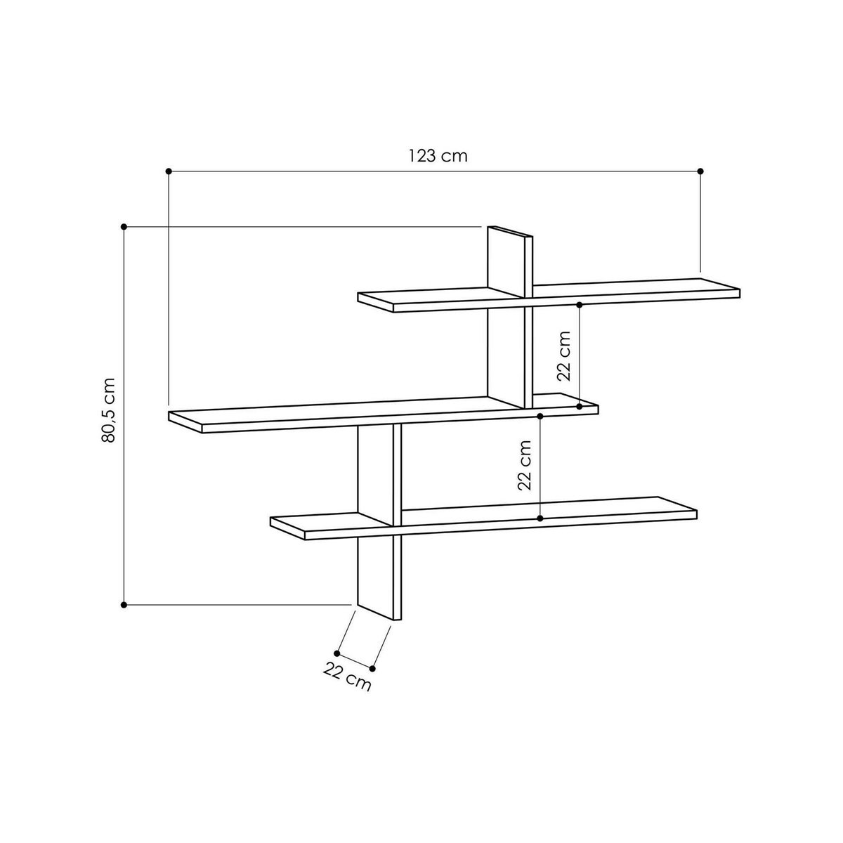 DIMENSÕES EM CM - Prateleira: Comprimento: 123 Largura: 22 Altura: 80,5