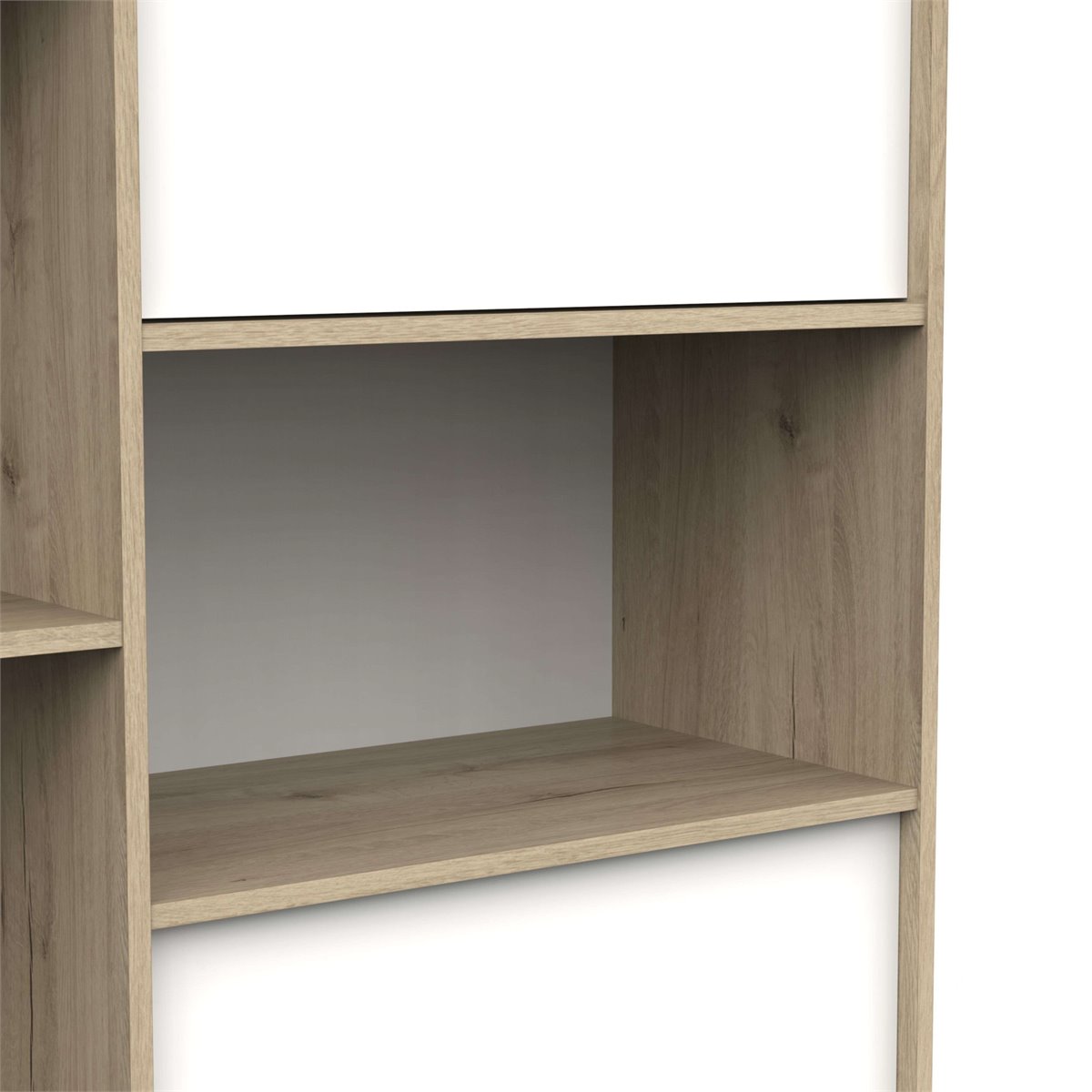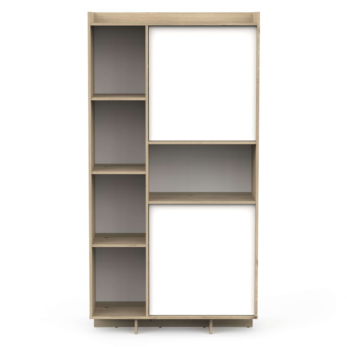 La estantería modelo Lead es un verdadero realce para cualquier espacio interior, dándole un aire renovado y contemporáneo. Con su diseño armónico que integra 2 puertas y 7 estantes, esta pieza no solo brinda amplias opciones para almacenar y ordenar, sino que también se convierte en un punto focal de cualquier habitación. El hueco central es perfecto para destacar objetos de decoración que capturan la atención. Su acabado en Roble Artisan y Blanco se complementa de maravilla con diversos estilos decorativos, ya sea en salones, oficinas o dormitorios, haciendo que cada entorno brille con un toque fresco y atractivo. La estantería modelo Lead está diseñada para optimizar el espacio de almacenamiento mientras realza el entorno de cualquier habitación. Compuesta por 2 puertas y 7 estantes, proporciona una generosa capacidad para acomodar una variedad de artículos, desde libros hasta adornos. Su hueco central ofrece un lugar ideal para colocar elementos decorativos destacados. Confeccionada en melamina, esta estantería muestra un acabado en tonos Roble Artisan y Blanco, brindando una venta de adaptabilidad a ambientes tanto modernos como clásicos. Es una opción acertada para integrar en salones, oficinas o dormitorios, contribuyendo a la organización del espacio con un diseño atractivo. Medidas: Ancho: 86 cm Alto: 182 cm Profundidad: 35 cm Se trata de mobiliario con kit de montaje, que incluye manual de instrucciones y tornillería.