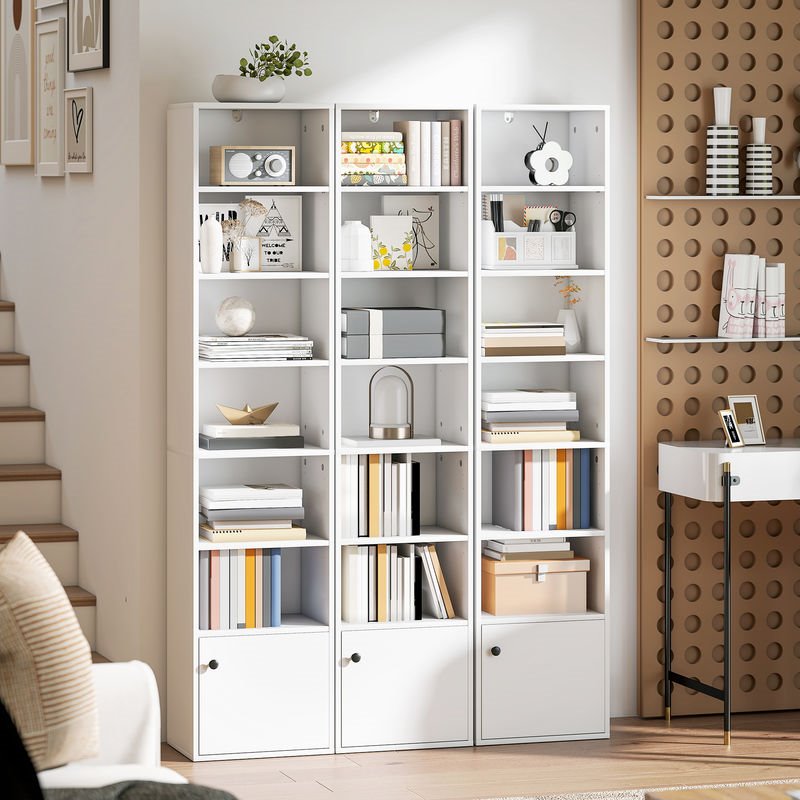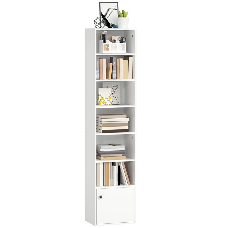 ¿Necesitas más espacio sin ocupar demasiado sitio? Esta librería de almacenaje blanca de HOMCOM es la opción ideal para aprovechar rincones y paredes vacías. Su diseño ofrece seis baldas abiertas y un práctico armario con puerta, perfecto para organizar libros, carpetas o decoración. Con baldas regulables y estructura compacta, convierte espacios reducidos en zonas útiles, aportando orden, estilo moderno y funcionalidad a cualquier estancia.