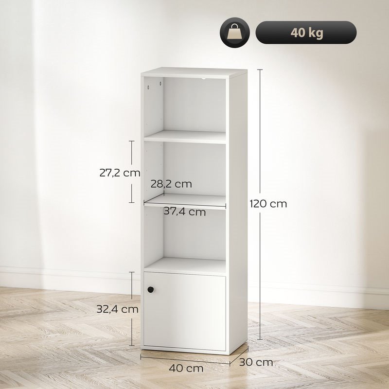 ¿Necesitas más espacio sin ocupar demasiado sitio? Esta librería de almacenaje blanca de HOMCOM es la opción ideal para aprovechar rincones y paredes vacías. Su diseño ofrece tres baldas abiertas y un práctico armario con puerta, perfecto para organizar libros, carpetas o decoración. Con baldas regulables y estructura compacta, convierte espacios reducidos en zonas útiles, aportando orden, estilo moderno y funcionalidad a cualquier estancia.