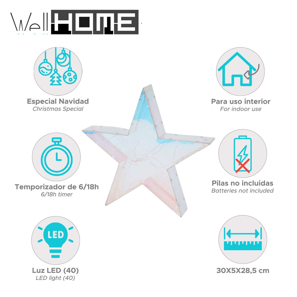 Transforma tu hogar con esta encantadora Estrella de pie que iluminará cualquier espacio con sus 40 LED micro blancos fríos.