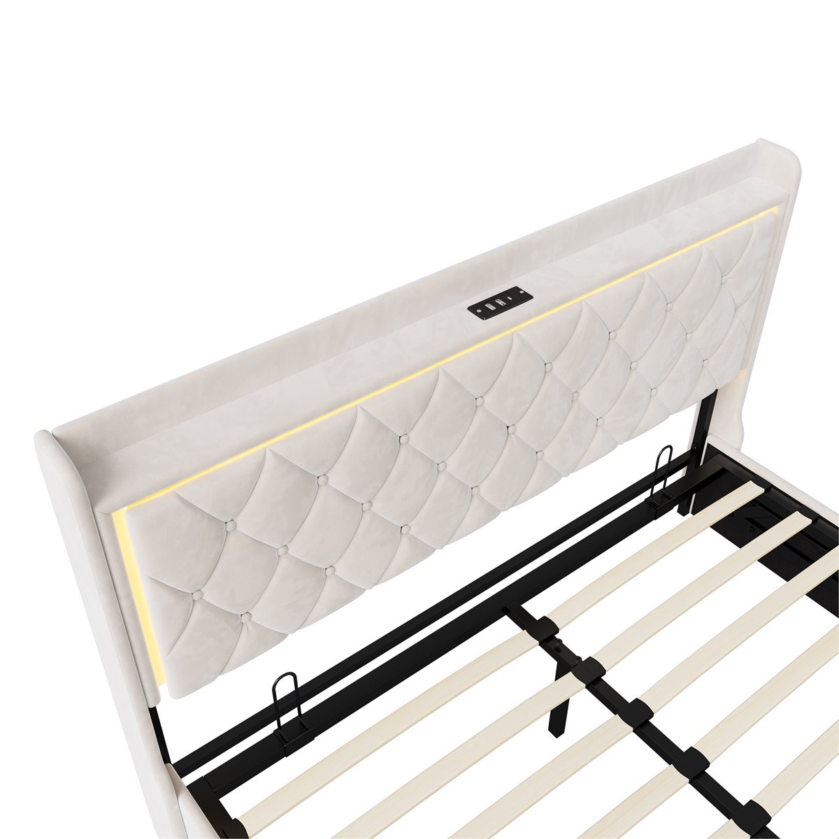 El cabecero cuenta con una moderna tira LED y una estación de carga para tus dispositivos.