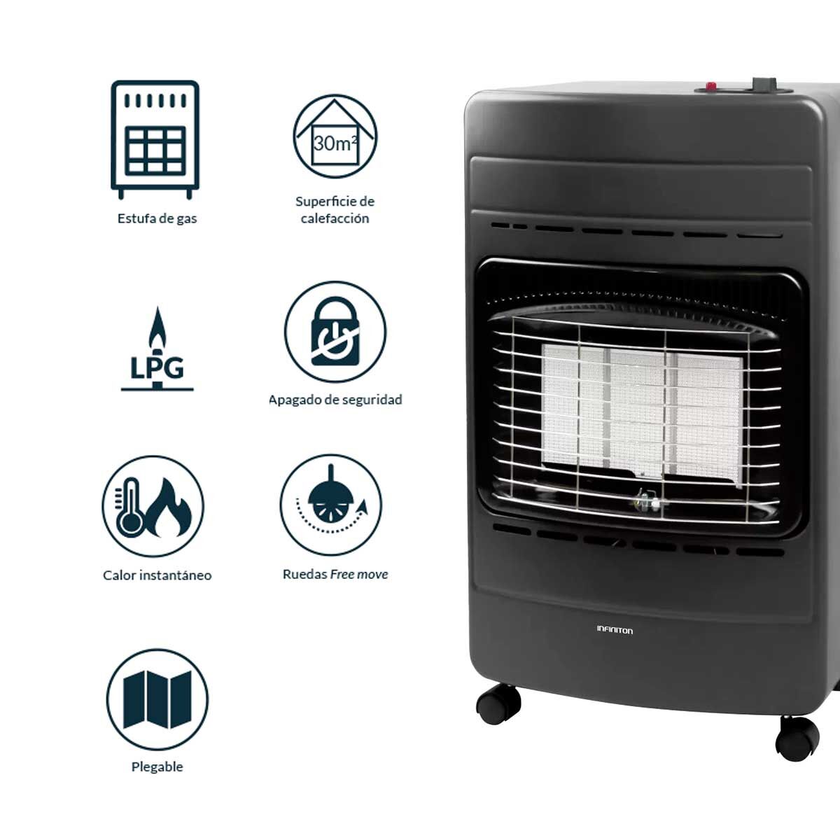 ¡Calor y confort en cualquier lugar con la estufa de gas HG-FL3 de Infiniton! Con una potencia impresionante de 4200W, esta estufa está lista para ofrecerte un calor eficiente y acogedor en cualquier momento. Compatible con propano, butano y LPG, su versatilidad la convierte en la compañera ideal para cualquier entorno. Equipada con 3 placas cerámicas de alto rendimiento, la HG-FL3 proporciona una distribución uniforme del calor en un amplio radio de 30m2. Y cuando se trata de encenderla, la ignición electrónica/piezoeléctrica garantiza un encendido sin esfuerzo y sin necesidad de cerillas. ¡Fácil y segura! ¿Quieres una estufa que te acompañe durante horas? ¡Esta es la indicada! Con una increíble autonomía de 42 horas con una bombona de 13 kilos, puedes disfrutar del calor continuo sin preocuparte por recambios constantes. Su diseño plegable hace que sea fácil de transportar y almacenar. Además, la estufa HG-FL3 viene con triple seguridad incorporada. Desde el seguro antivuelco hasta el sensor de oxígeno y el dispositivo de seguridad ODS y FFD. ¡Mantén el frío a raya y crea un ambiente cálido y acogedor con la estufa de gas de Infiniton!