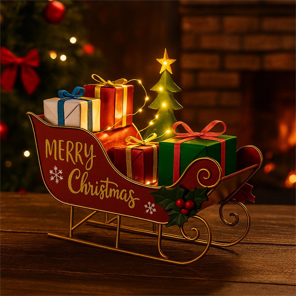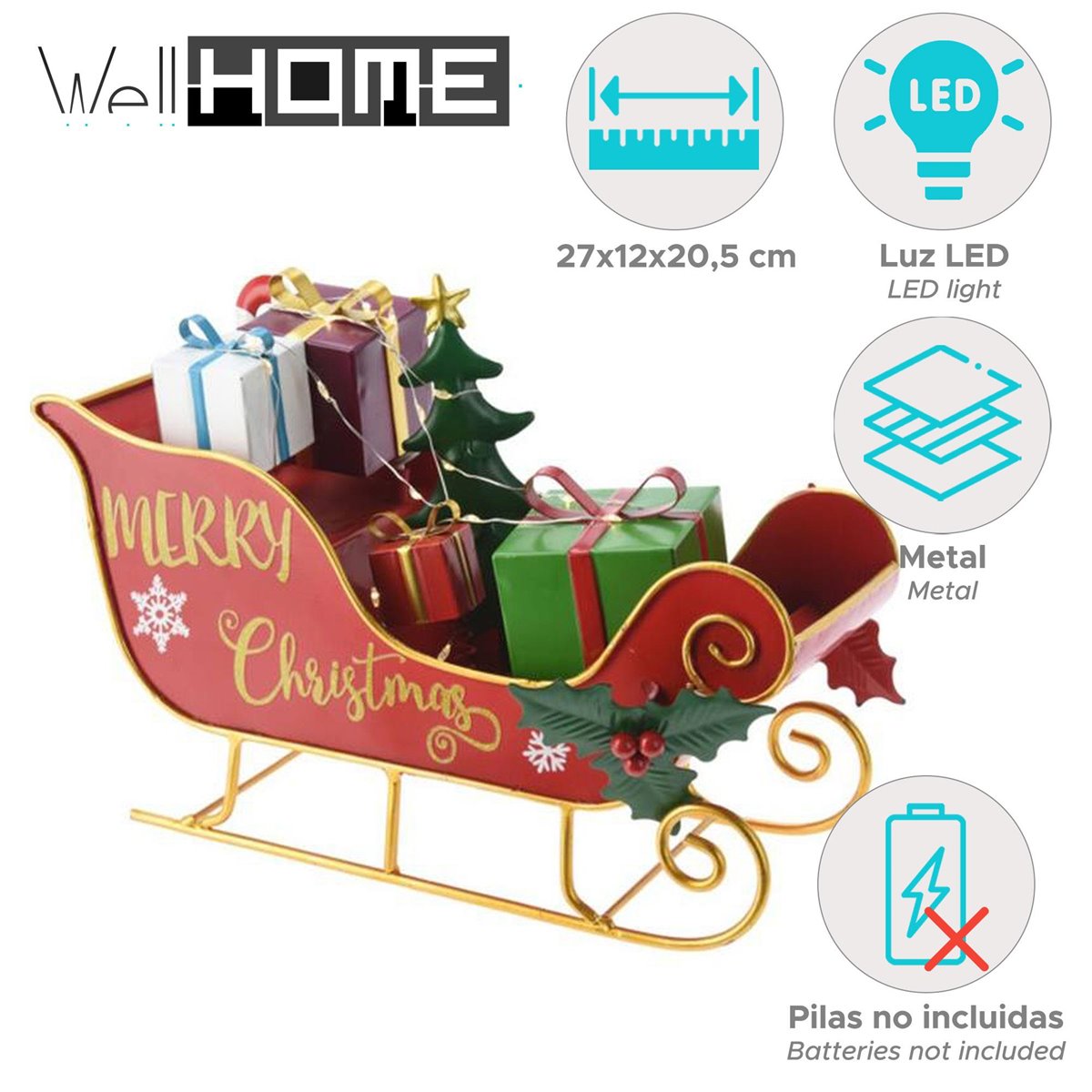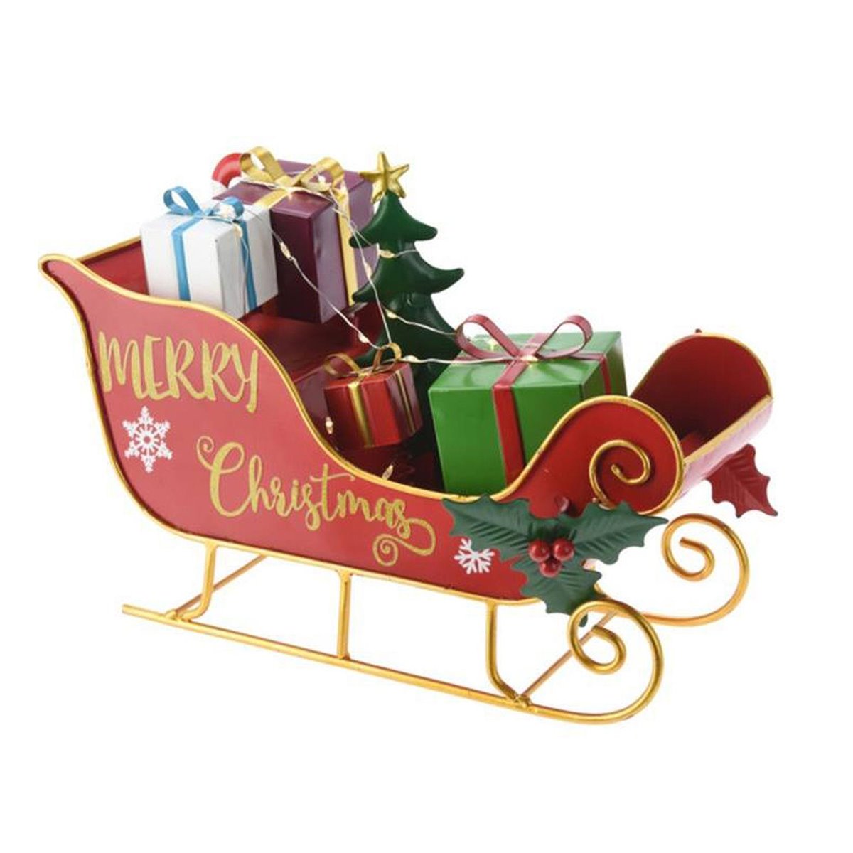 Decora tu hogar con la magia de la Navidad gracias a esta figura decorativa de trineo con regalos y con luces LED.