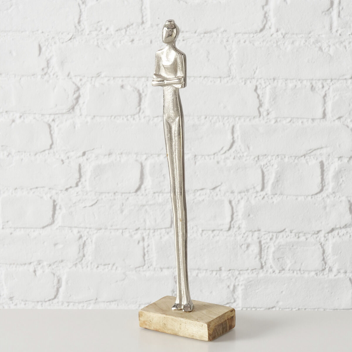 Embellece tu espacio con la figura QUINA WOMAN de la reconocida marca BOLTZE. Esta pieza única, confeccionada en aluminio y montada sobre una base de madera, ofrece una fusión perfecta entre elegancia y estilo contemporáneo. Con unas dimensiones de 38x9x6,4 cm, su color plateado añade un toque de sofisticación a cualquier ambiente. Ya sea como pieza central en tu sala de estar o como adorno en tu oficina, esta figura impresionará con su belleza y refinamiento. Déjate cautivar por la elegancia atemporal de la figura QUINA WOMAN de BOLTZE.