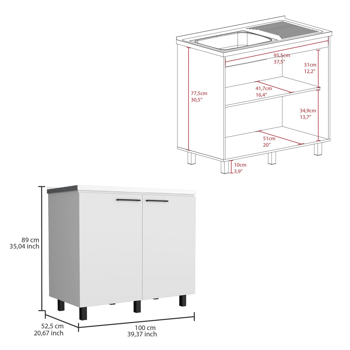 Descubre el Fregadero de Cocina Nápoles, la pieza clave para una cocina funcional y estilizada. Fabricado en acero inoxidable (100 CM A X 52,5 CM P), garantiza durabilidad en cada lavado. Sus puertas ofrecen almacenamiento interno (95,5 CM AN X 35 CM A) optimizando el espacio. Con tiradores y patas a juego, es un símbolo de diseño y eficiencia. Madera manufacturada con acabado en blanco, se adapta a cualquier estilo. *** Grifo no incluido***
